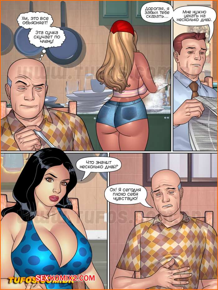 Порно комикс Папочка. Тесть извращенец. Часть 2. Разграничение территории. Tufos Старик притворился тем, что болен, чтобы оказаться наедине с сексуальной горничной блондинкой. Он соблазнил ее своим большим хуем, после чего выебал сучку в пизду и задницу.