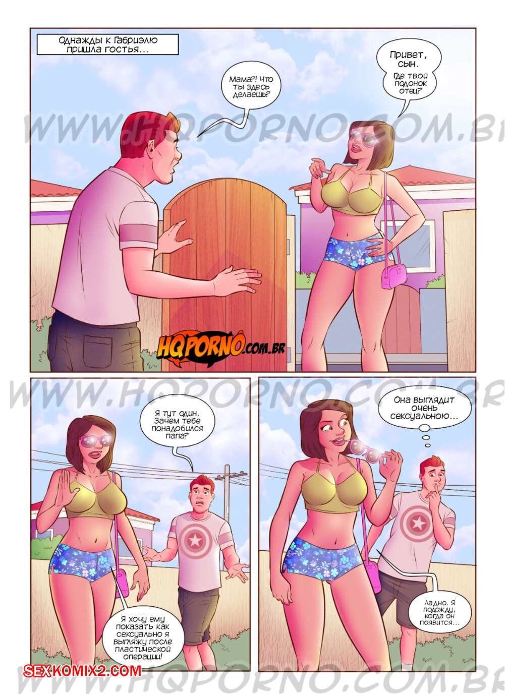 Порно комикс Извращенцы. Часть 9. Визит мамы. Os pervertidos. Hqporno Сисястая милфа отправилась на свидание со своим сыном, после чего они решили повеселиться. Красотка разделась и отсосала большой хуй сына, после чего дала ему себя выебать.