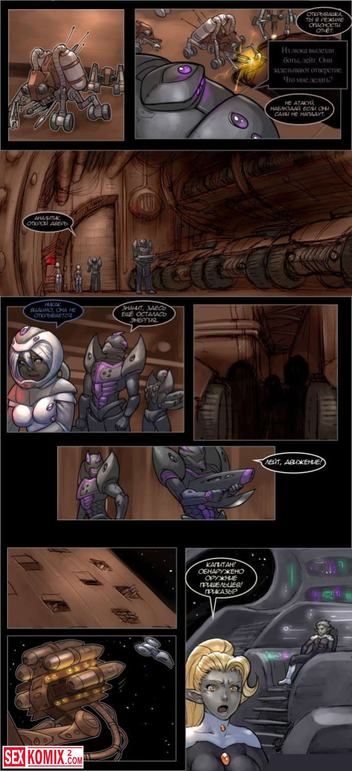 Порно комикс Истории Дроу. Космический Век. Раса темных эльфов вынуждена была покинуть свою родную планету и улететь в космос, где ещё больше опасностей.