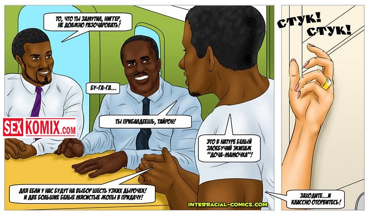 Порно комикс «Отчим по-американски. Часть 3». Продолжение комикса для взрослых, в котором чернокожие парни с большими членами трахают во все дыры блондинок. Теперь уже развратные мама и девушка, вместе сохнут по неграм. Парочкой приходят к ним на оргии…