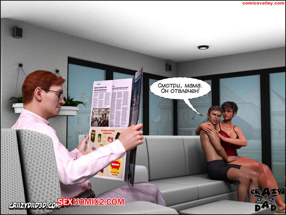 Порно комикс Доктор Брэнди. Часть 9. Doctor Brandie. CrazyDad3D Милфа брюнетка отдыхала у себя в гостинной и стала вспоминать секс с сыном, но ей помешал муж. К красотке подсел ее сын, который стал ласкать большие сиськи мамочки даже не смотря на то, что рядом был его отец.