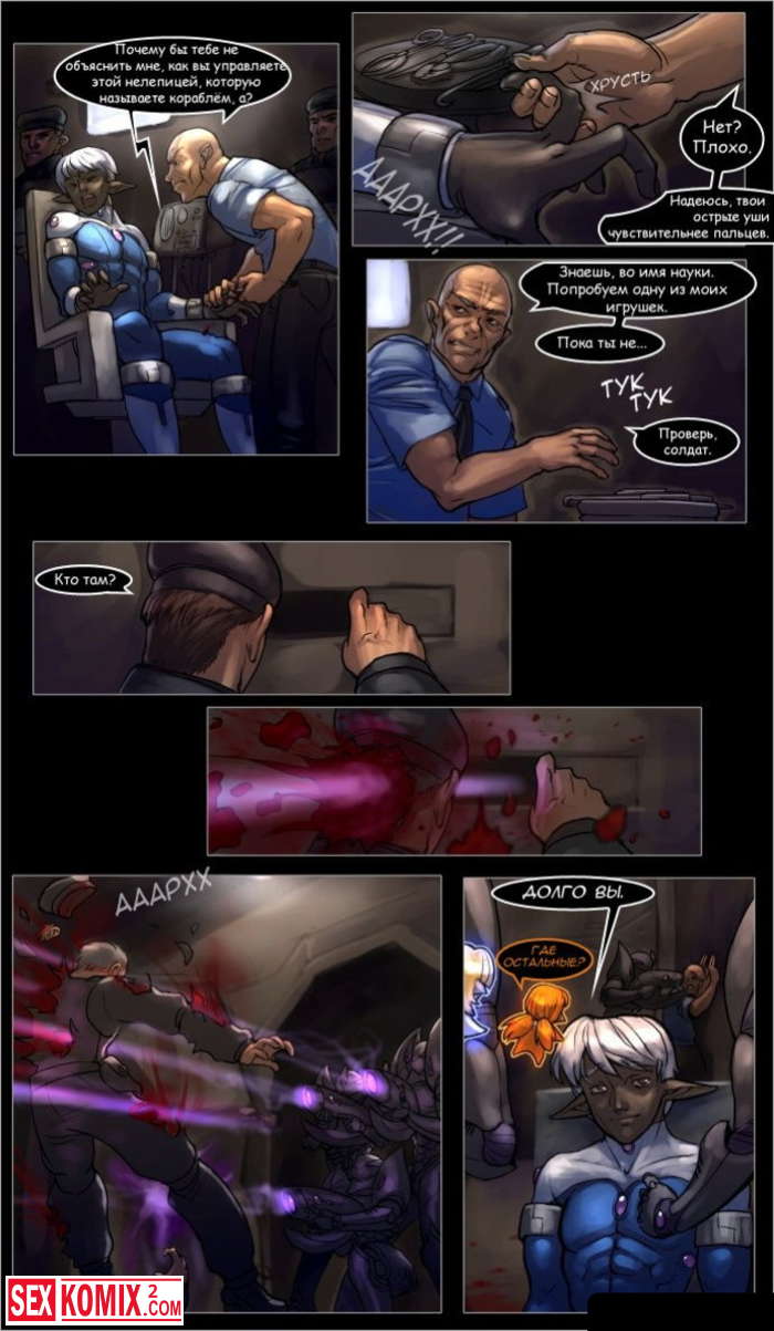 Порно комикс Истории Дроу. Космический Век. Часть 2. Команда эльфов пала на борт к людям и теперь они их пленники.
