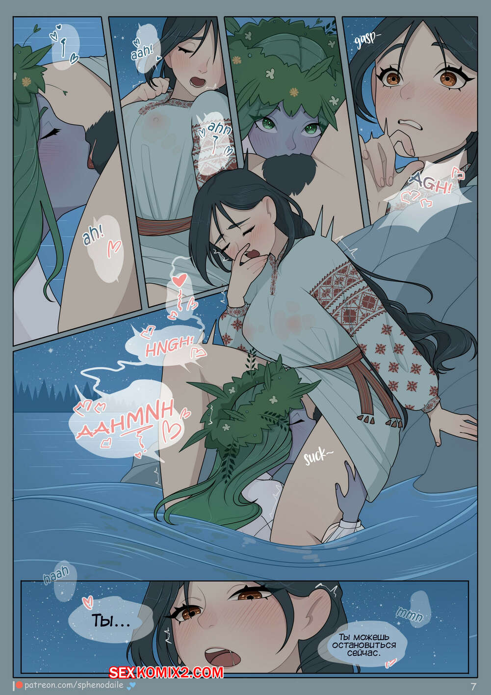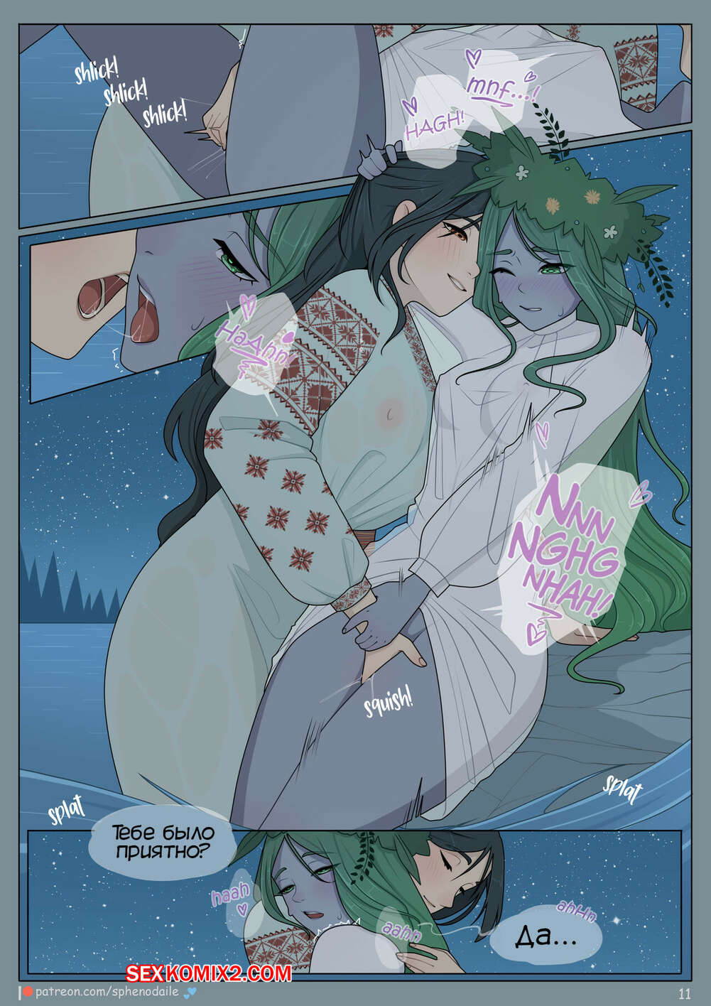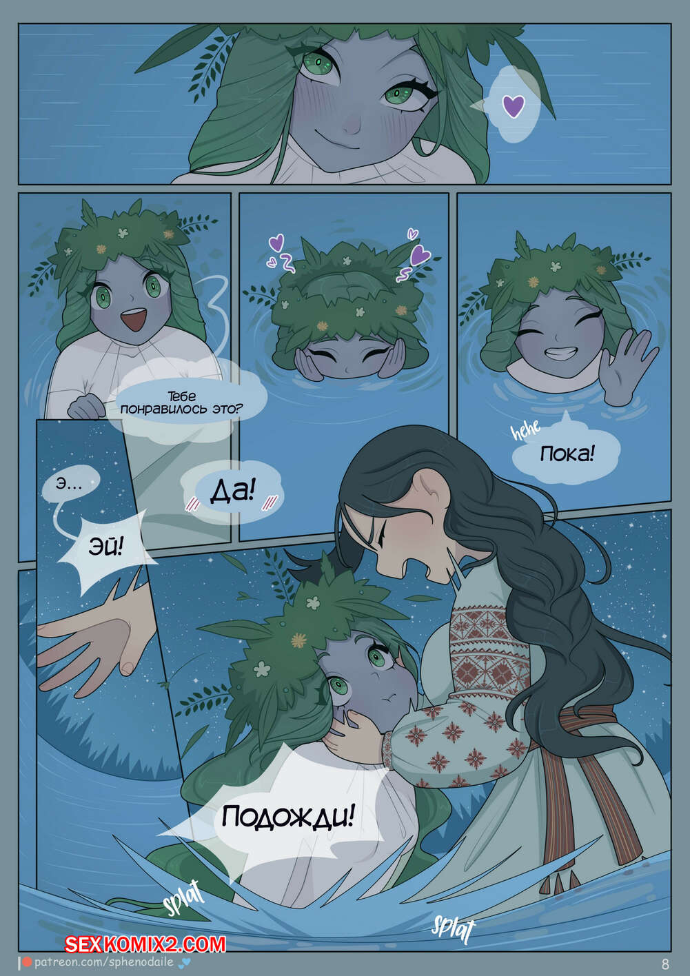 Порно комикс Ночь купальская. Night on Kupala. Sphenodaile Молодая девушка отправилась на водоем в ночь Ивана Купалы. Там она встретила девушку, живущую в воде, которая стала ласкать ее пизденку, доставляя красотке огромное удовольствие.