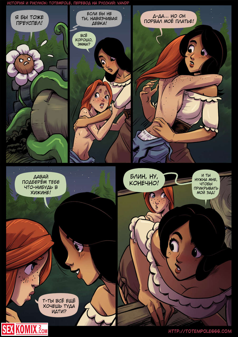 Порно комикс Волшебница. Часть 20. Две подружки нашли в лесу избушку и остались в ней на ночь, они замечательно развлеклись вместе.