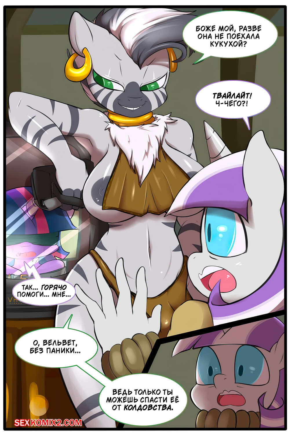 Порно комикс My Little Pony. Сделай это для неё. Часть 1. Saurian Горячая сексуальная красотка с большим хуем была очень возбуждена и решила повеселиться со своей подругой. Она раздела ее и дала ей отсосать свой большой хуй, после чего хорошенько ее выебала.