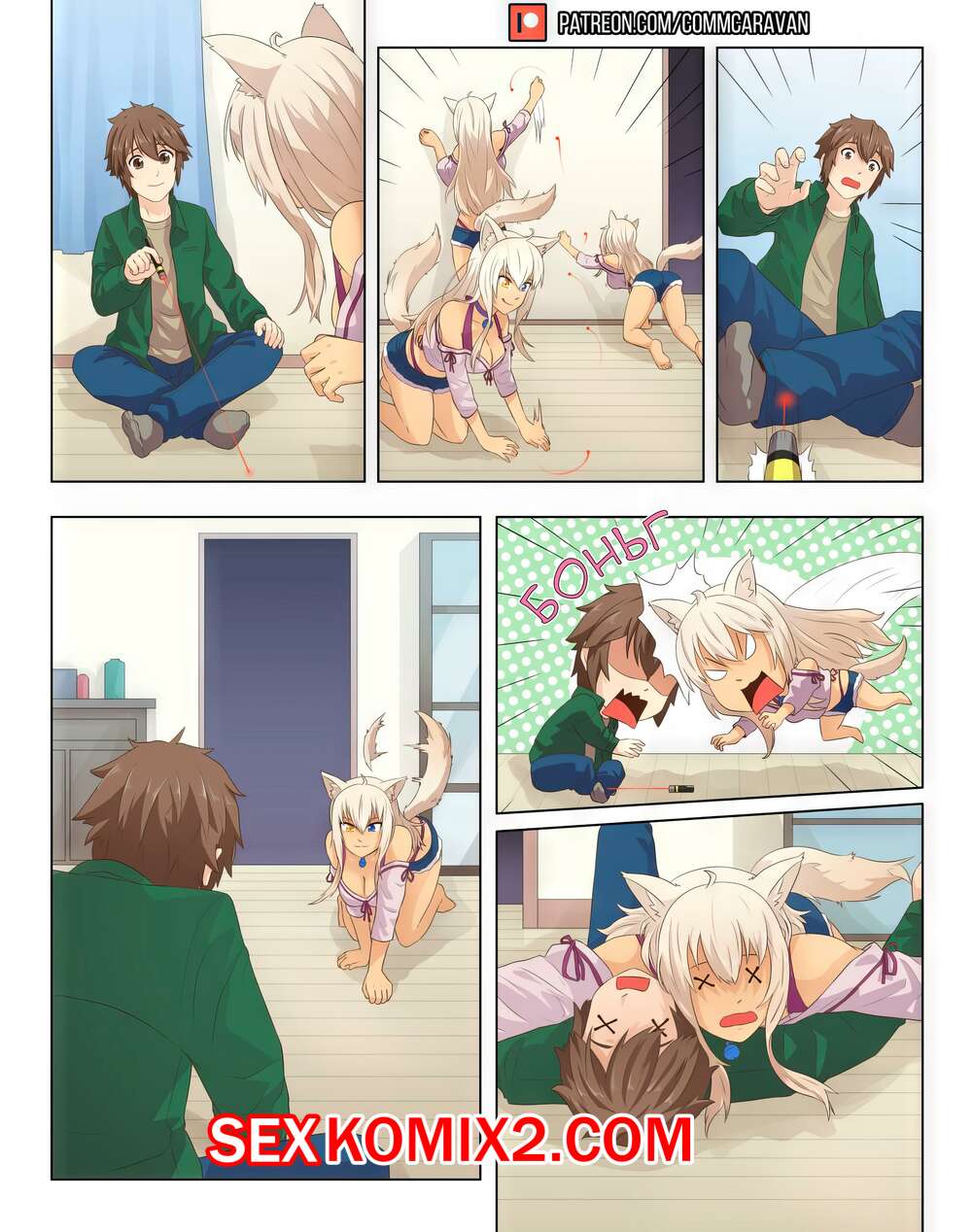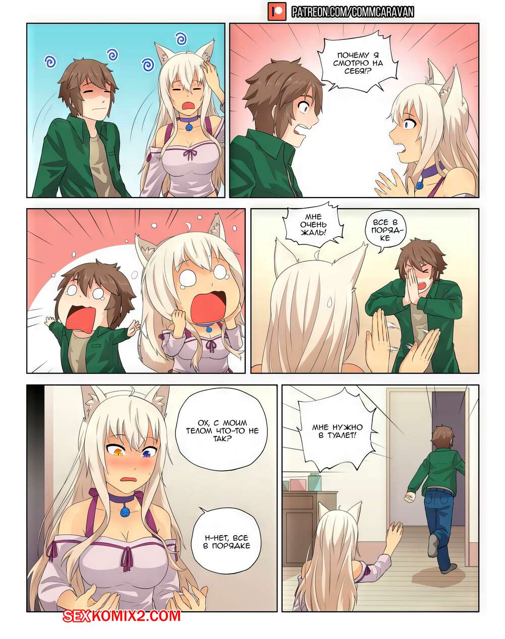 Порно комикс Nekopara. Обмен телами. CommCaravan Парень с девушкой поменялись телами и решили этим воспользоваться. Девушка разделась и развдинула ножки перед парнем, а он ее хорошенько выебал своим большим хуем.