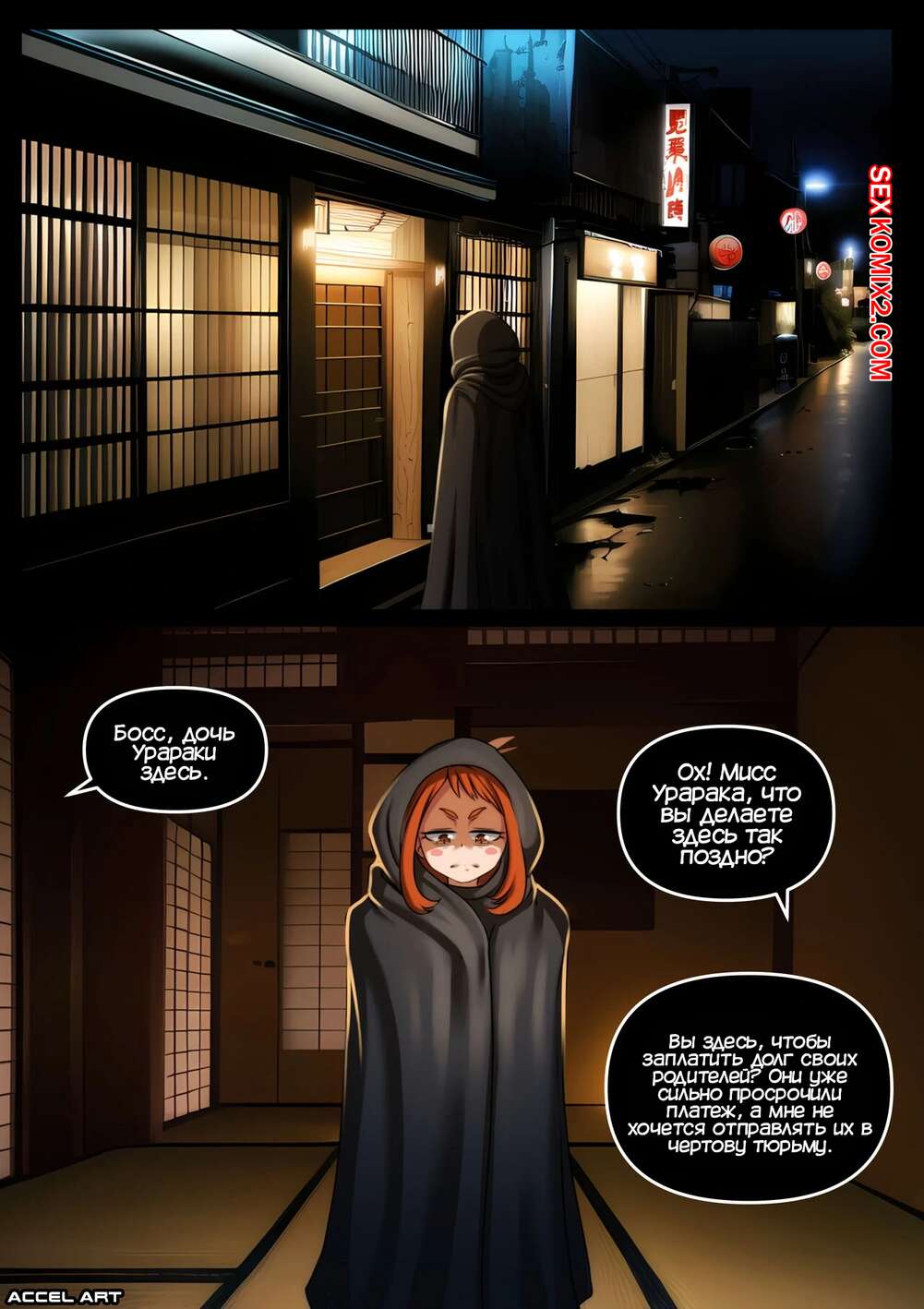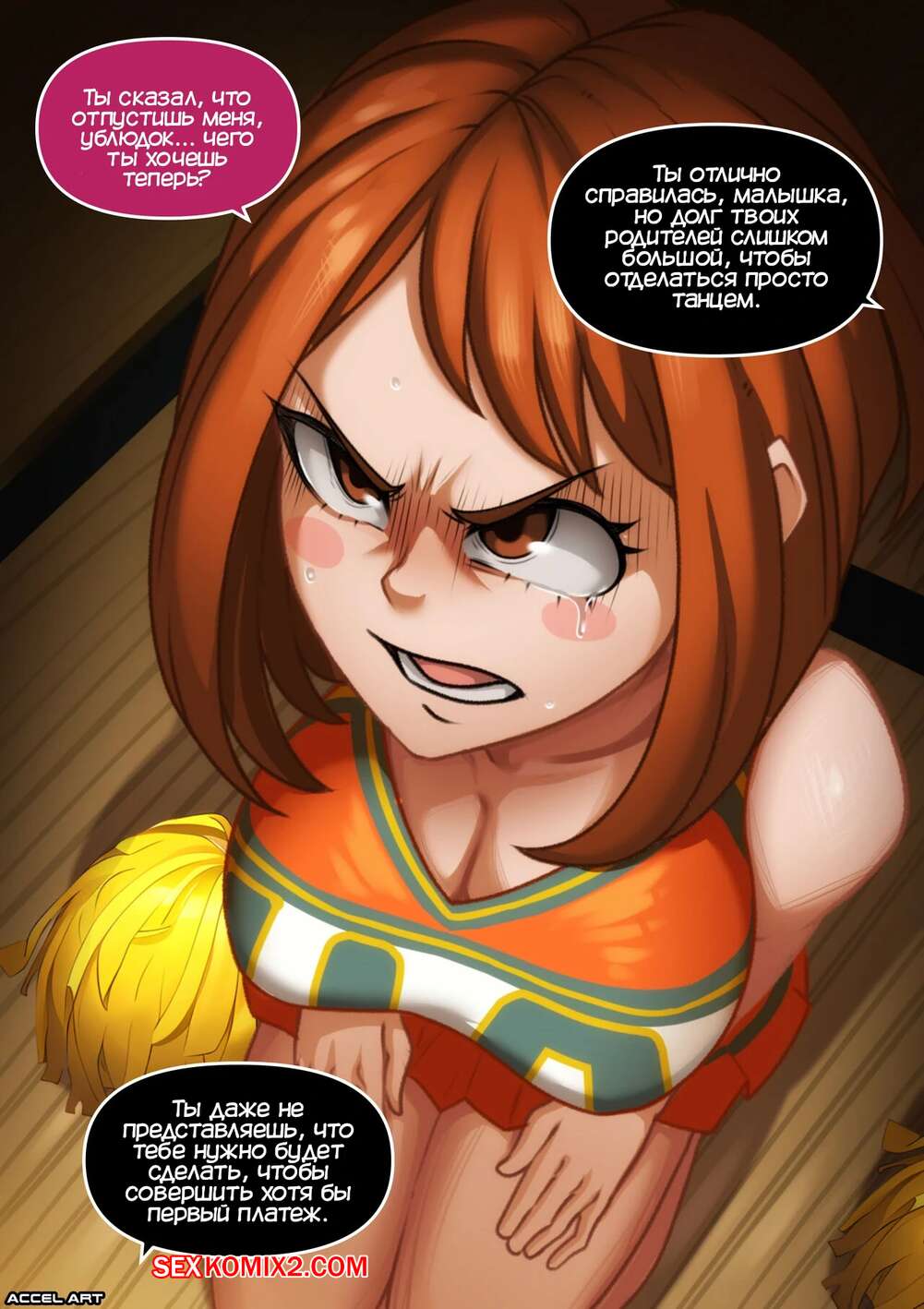 Порно комикс Академия. Преображение Вайфу. Очако Урарака. Waifu Metamorphosis Accel Art Сексуальная красотка Урарака пришла к боссу мафии, чтобы расплатиться за долг своих родителей. Девушке пришлось танцевать, после чего ее раздели и выебали хорошенько, превратив девушку в шлюху.