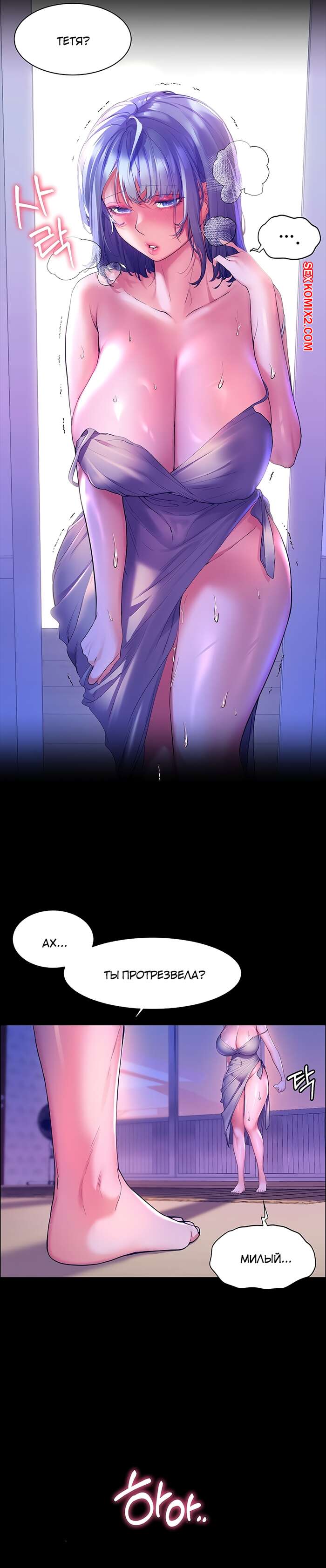 Порно комикс Друг детства. Части 35 и 36 и 37 и 38. Childhood Bride Сисястая брюнетка милфа была очень пьяна и перепутала своего племянника со своим мужем. Красотка стала раздеваться перед парнем, после чего стала сосать его большой хуй.