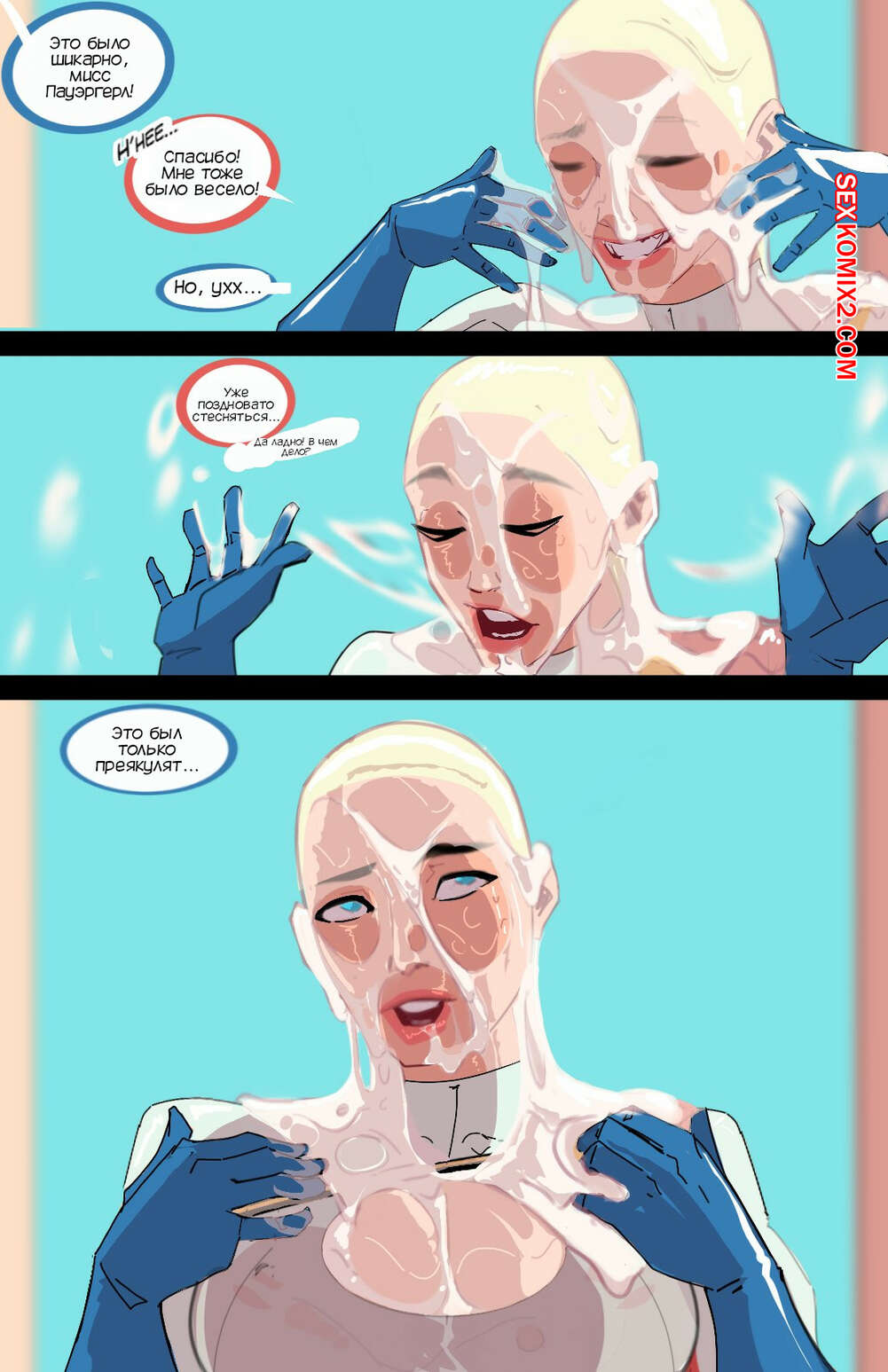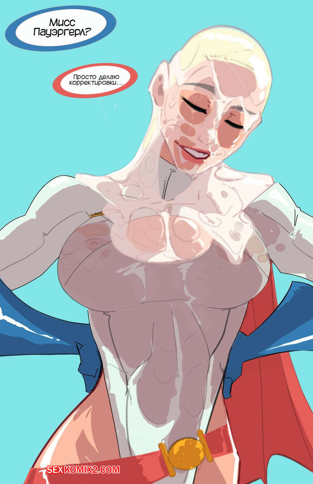 Порно комикс Powergirl. Декабрьский дождь. December Rain. BatNipsForever. Сексуальная блондинка Пауэргерл встретилась со своим фанатом и они решили повеселиться. Парень достал свой огромный хуй и покрыл красотку огромным количеством своей спермой, от чего она получила невероятное удовольствие.