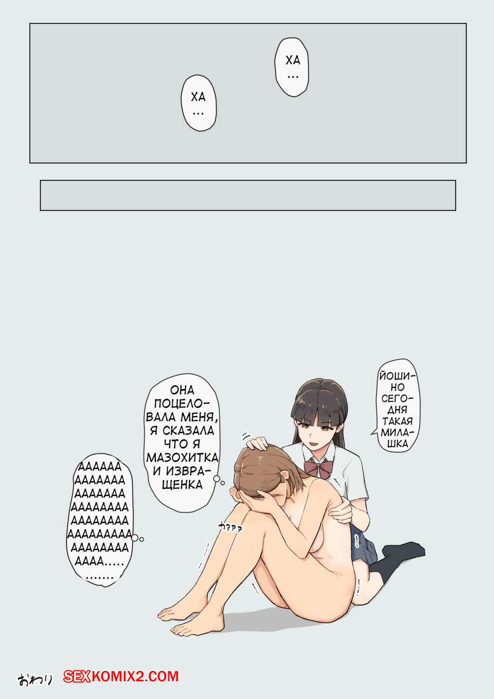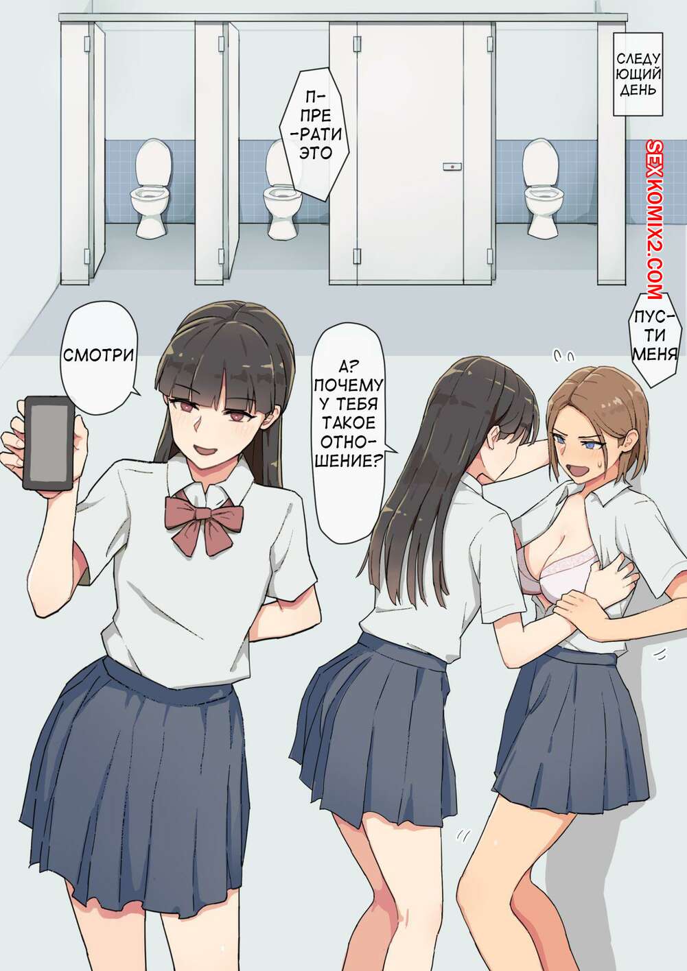 Порно комикс История о горделивой девушке, которую шантажировали и заставляли кончать. Часть 1 Молодая сексуальная брюнетка была очень возбуждена и решила повеселиться со своей одноклассницей. Она раздела ее и стала ласкать ее пизденку, после чего трахнула ее пальчиками в попку.