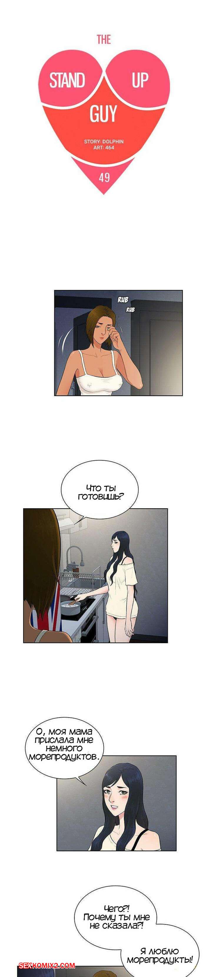Порно комикс Стойкий парень. Часть 49. The Stand Up Guy. Пока две подружки спорят, что им есть на на завтрак. Парень после побоев пытается выздороветь. С этим ему помогает его подруга, свои ротиком заглатывая его хуй.