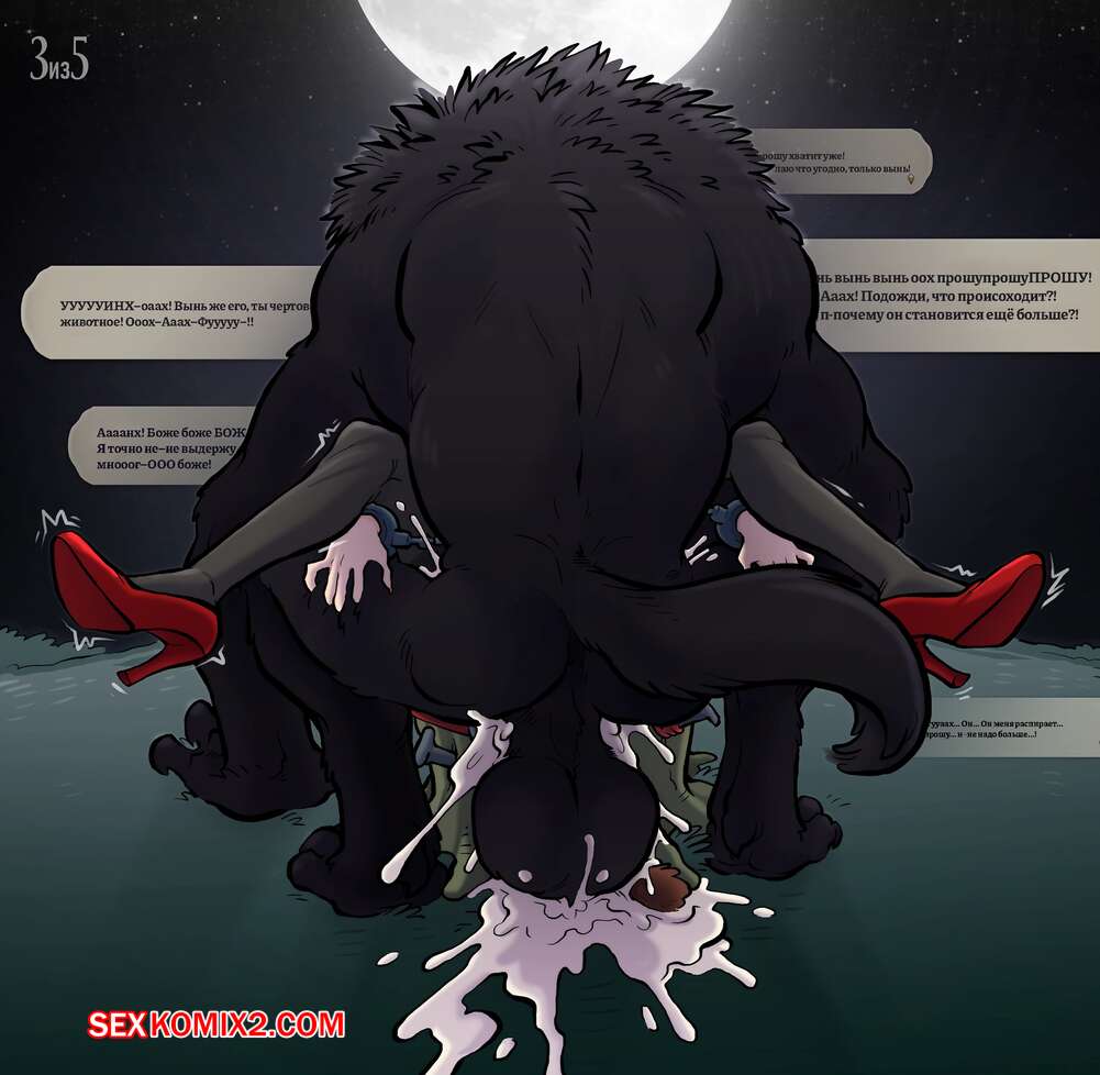 Порно комикс Кусака. Scarewerewolf. Красотка решила остаться одна в лесу и привлечь монстра. Это удалось, ее выебал монстр.