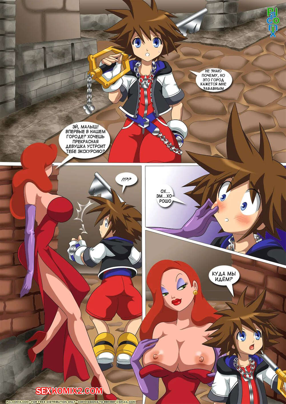 Порно комикс Добро пожаловать в Траверс Таун. Welcome To Traverse Town. Kingdom Hearts. Palcomix. Рыженькая с большими сиськами на улице увидела парня и решила его соблазнить. Она прижала его к стенке своими огромными буферами.