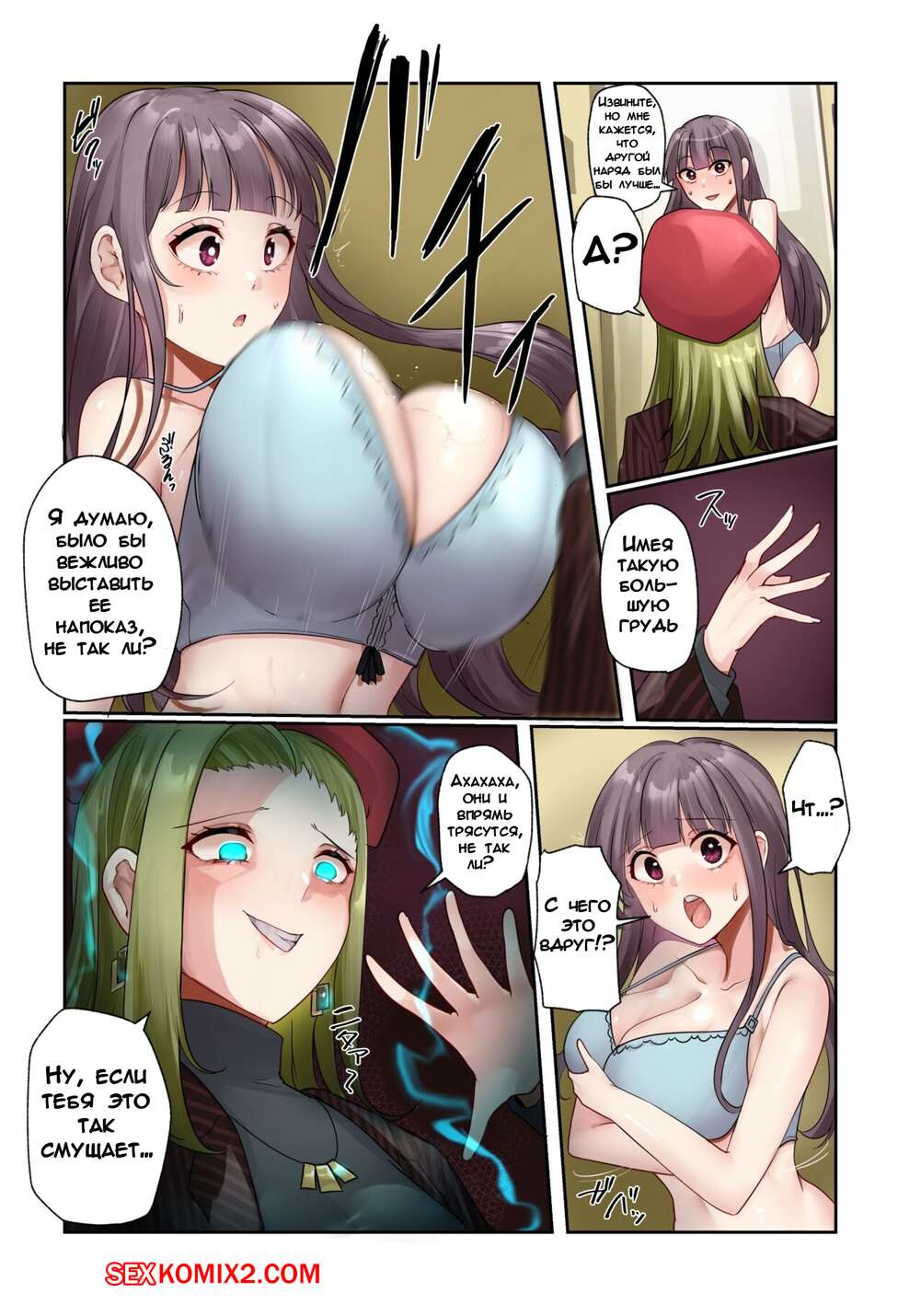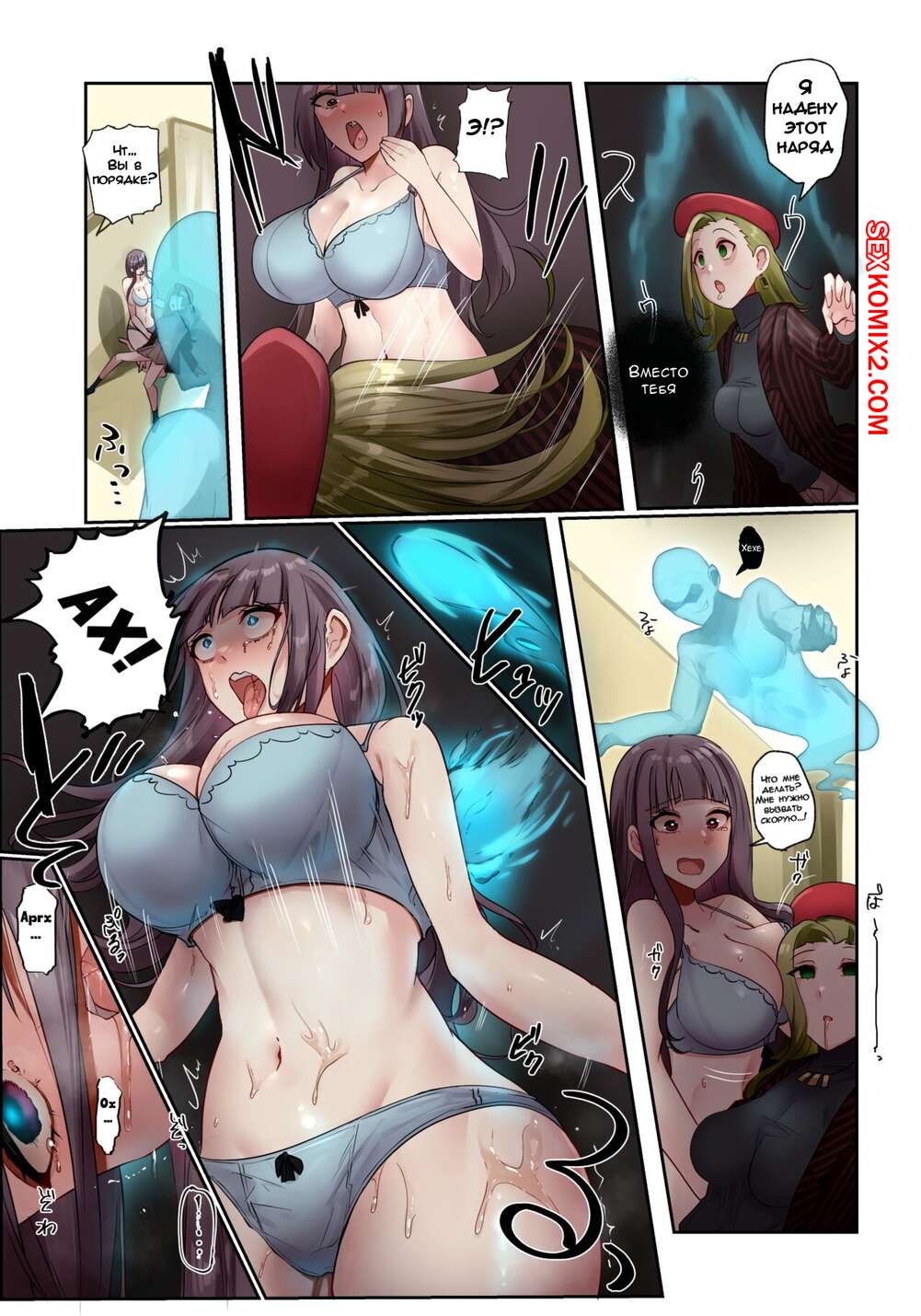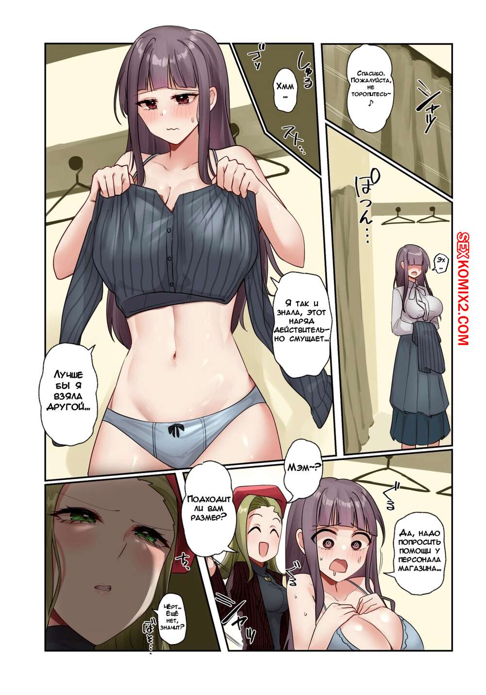 Порно комикс Одержимость в магазине одежды. Hyoui Lover Сексуальная брюнетка пришла в магазин одежды и отправилась в примерочную. Там она невероятно сильно возбудилась и стала ласкать свои большие сиськи и пизденку.