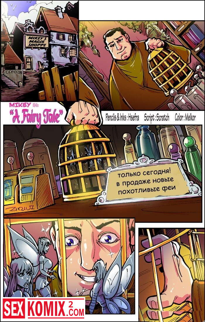 Порно комикс Продавец похотливых фей. Майк собирает разных фантастических существ, и вот к нему попали развратные феи. Он не удержался и воспользовался ими.