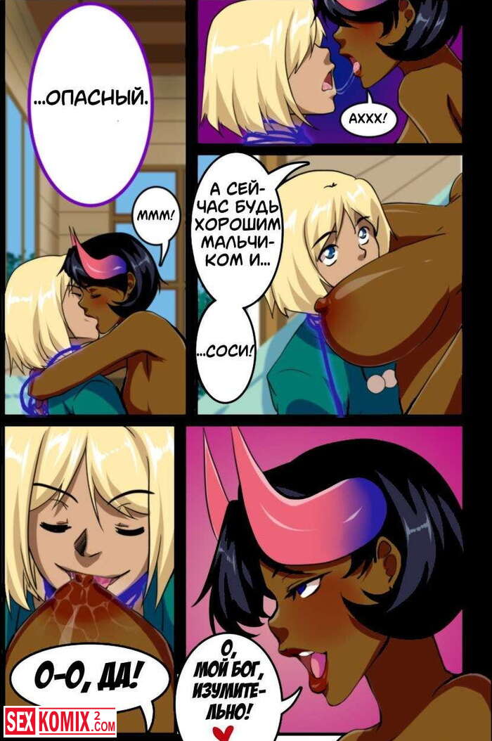 Порно комикс Извращенцы. Часть 4. Борьба за член парня началась, аппетитная мулатка и крупная блондинка соревнуются за его внимание.