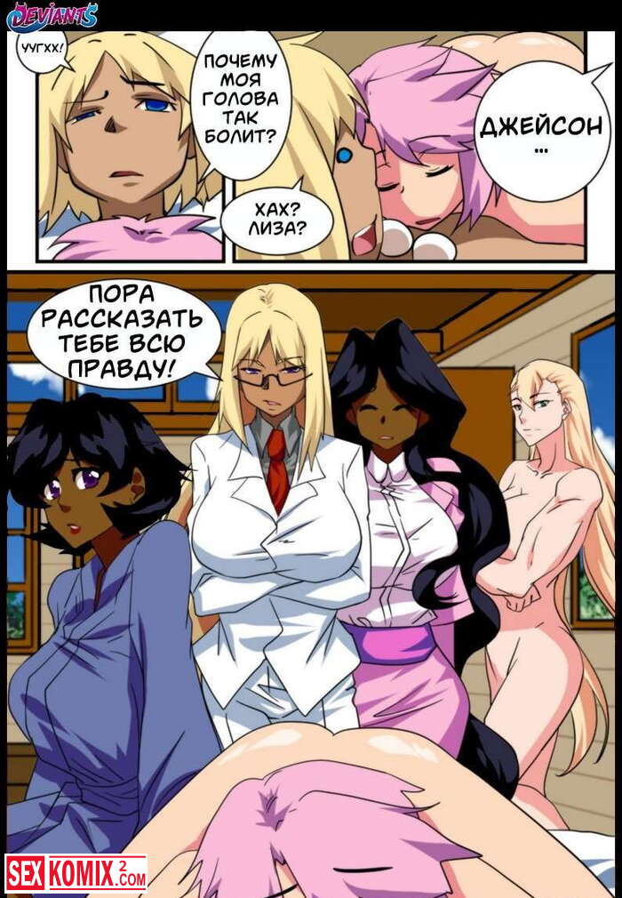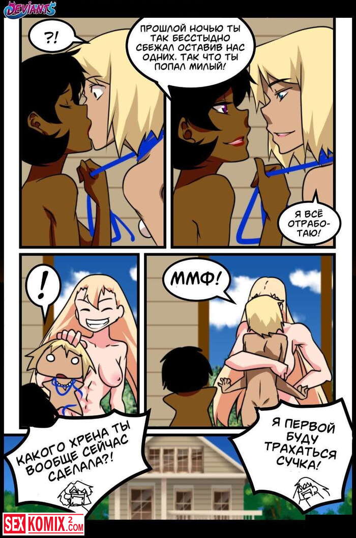 Порно комикс Извращенцы. Часть 5. Вся правда. В борьбу за член этого парня вступила ещё одна красотка с розовыми волосами и успешно соблазнила его.
