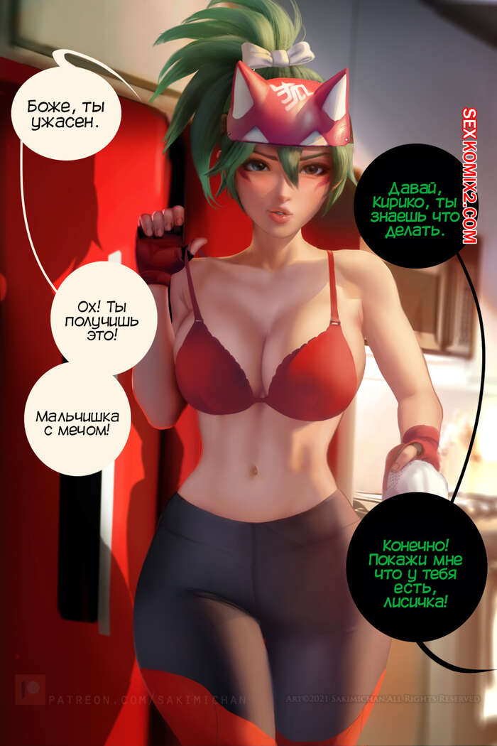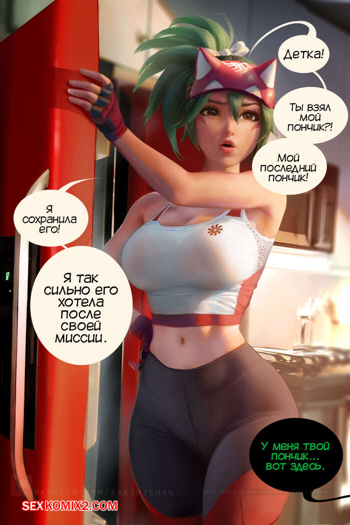 Порно комикс Overwatch. Кирико хочет свой пончик. Kiriko wants her donut Горячая красотка Кирико вернулась со своей миссии и хотела съесть последний почник, но она не смогла найти его в холодильнике. Парень девушки забрал пончик, чтобы отдать его ей в обмен на отсос.