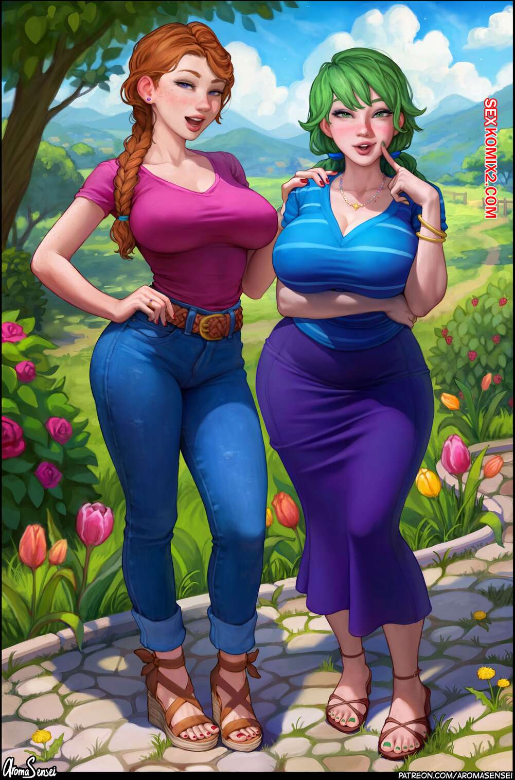 Порно комикс Голодные милфы. Hungry Milfs. Aroma Sensei Молодой парень приехал в деревню работать фермером. Две горячие милфы позвали его прогуляться в лесу, где они отсосали его хуй. Затем рыжая красотка пригласила парня на ужин, где дала ему себя выебать.