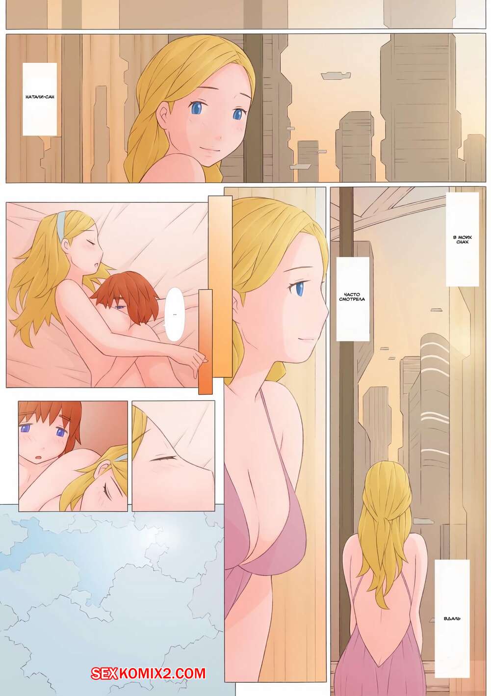 Порно комикс Натайя сан и я. Natalia san to Boku. Взрослая блондинка доебалась до парня, она хочет трахаться. А парню ничего не остаётся как выебать красотку.
