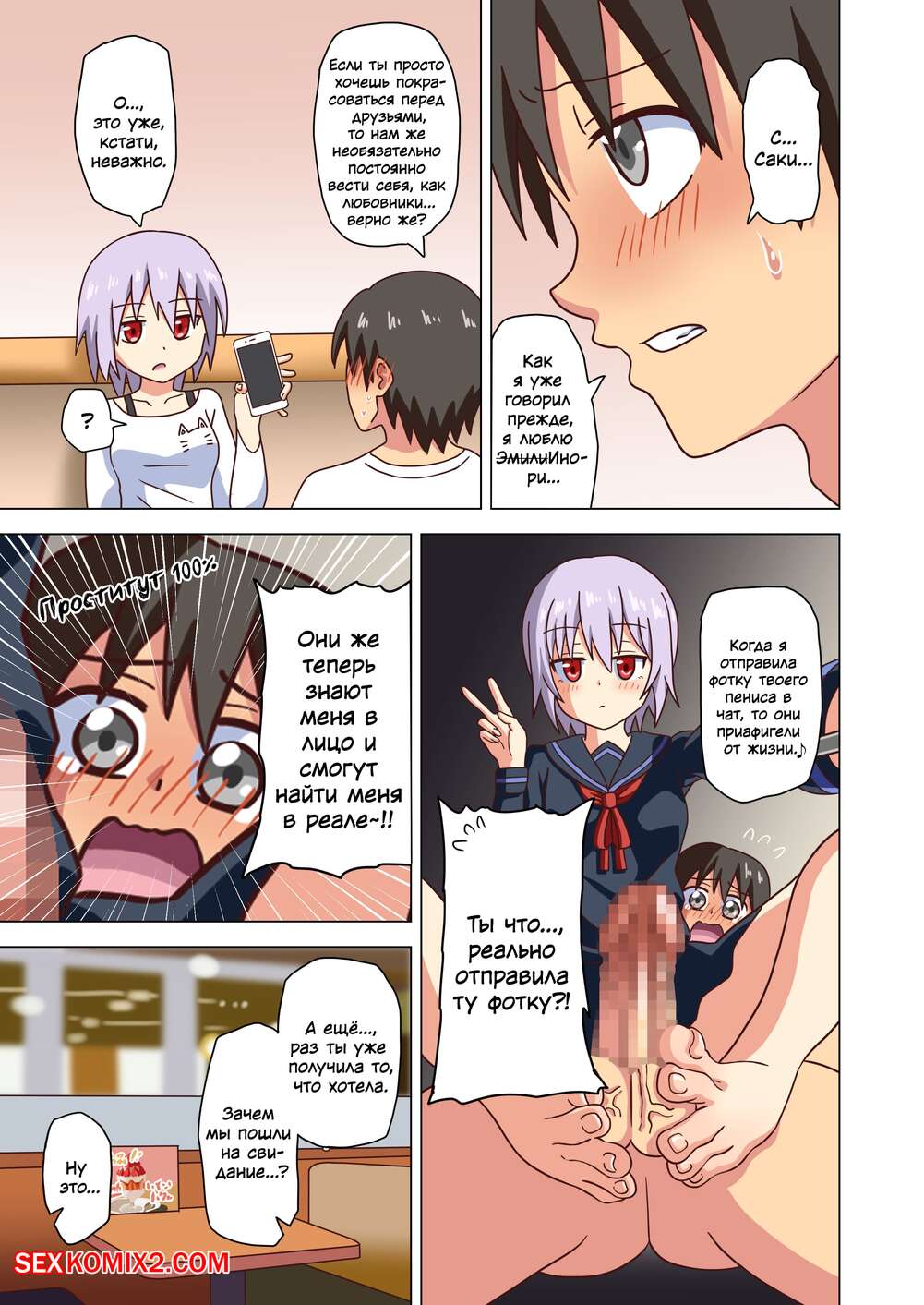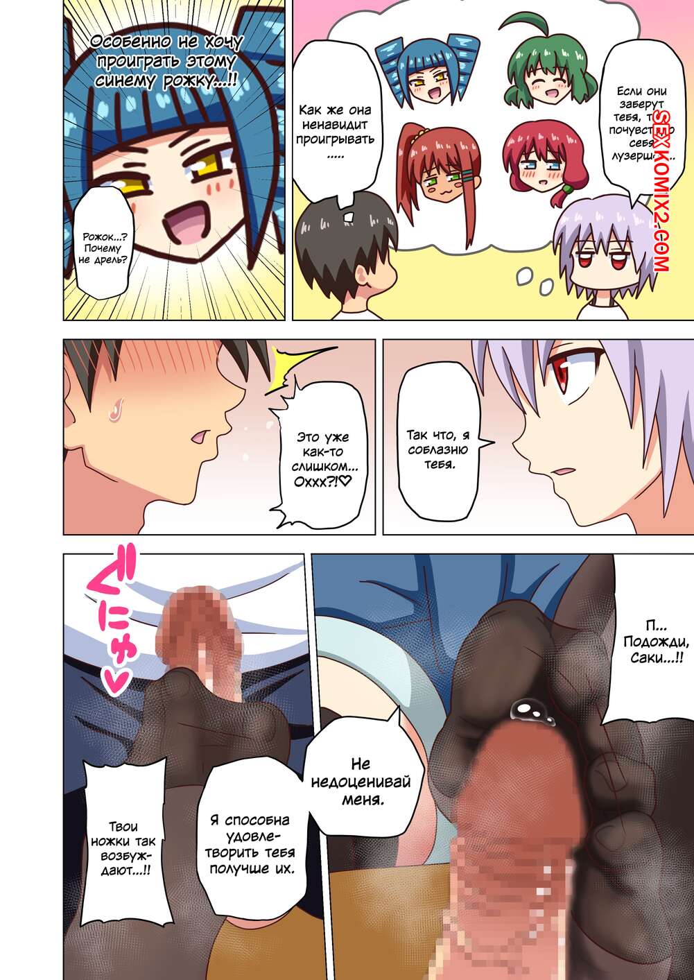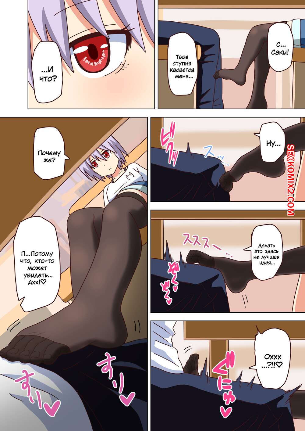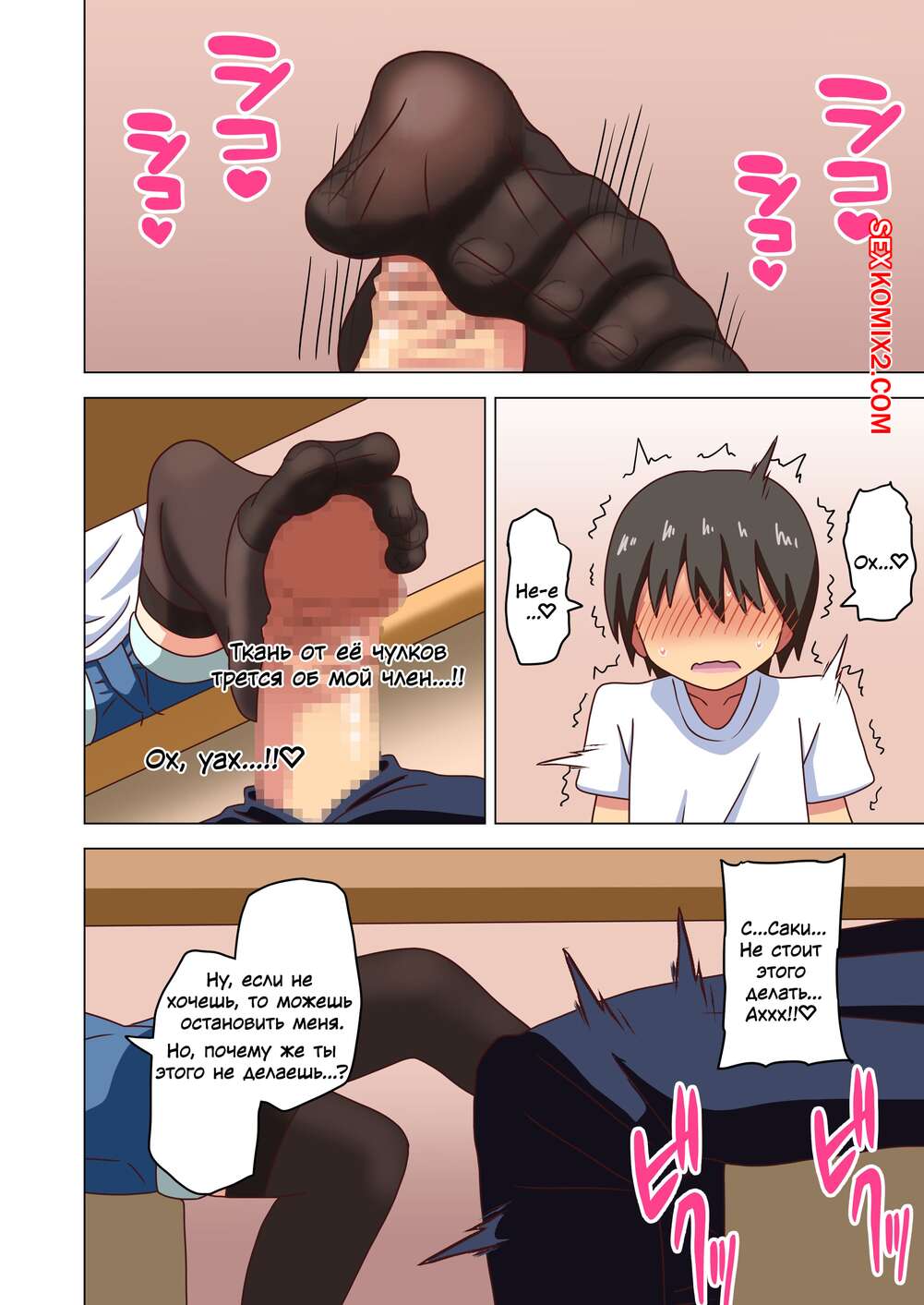 Порно комикс История футфетишиста. Часть 24. Nush Сексуальная блондинка была очень возбуждена и решила повеселиться со своим дружком. Она достала хуй парня и стала дрочить его своими ножками, помогая парню кончить.