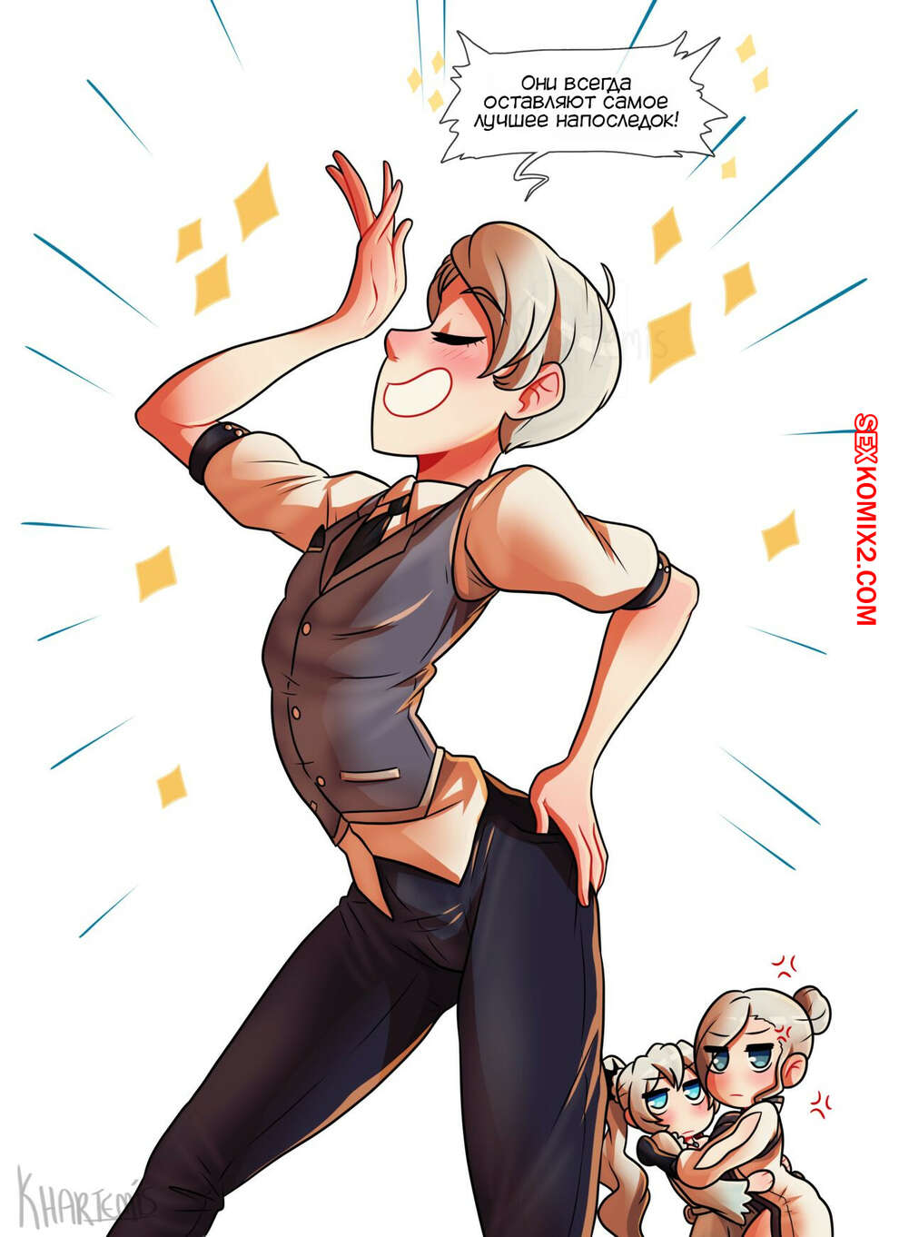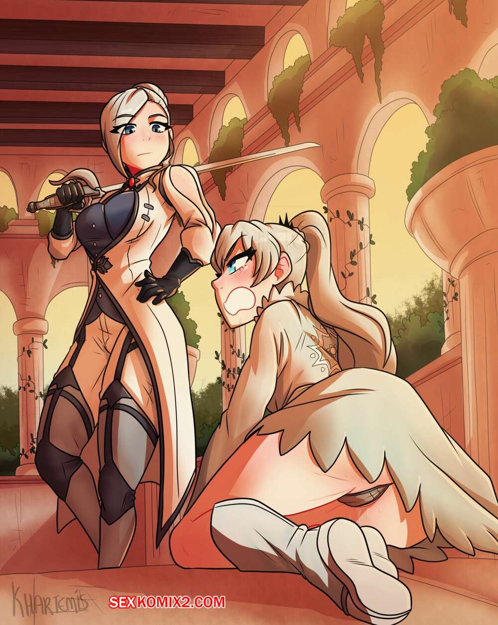 Порно комикс Секреты. Вайс и Винтер. Secrets. Weiss and Winter. Khartemis Винтер и Вайс устроили спаринг и младшая сестренка как всегда проиграла. Вайс решила поднять настроение сестренке и стала ласкать ее пизденку, после чего дала ей отведать на вкус свою киску.