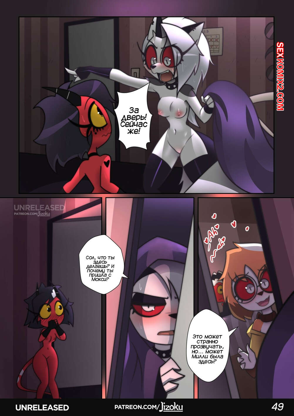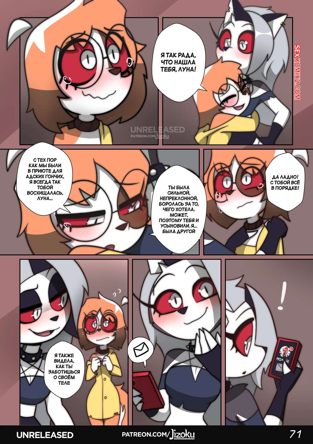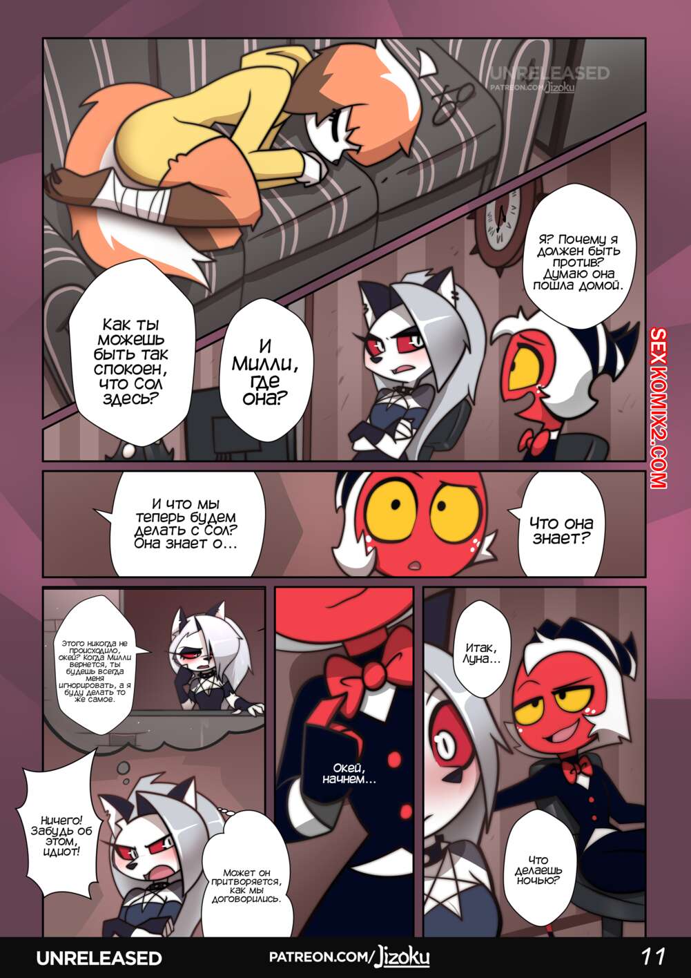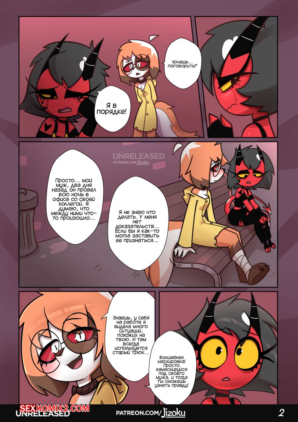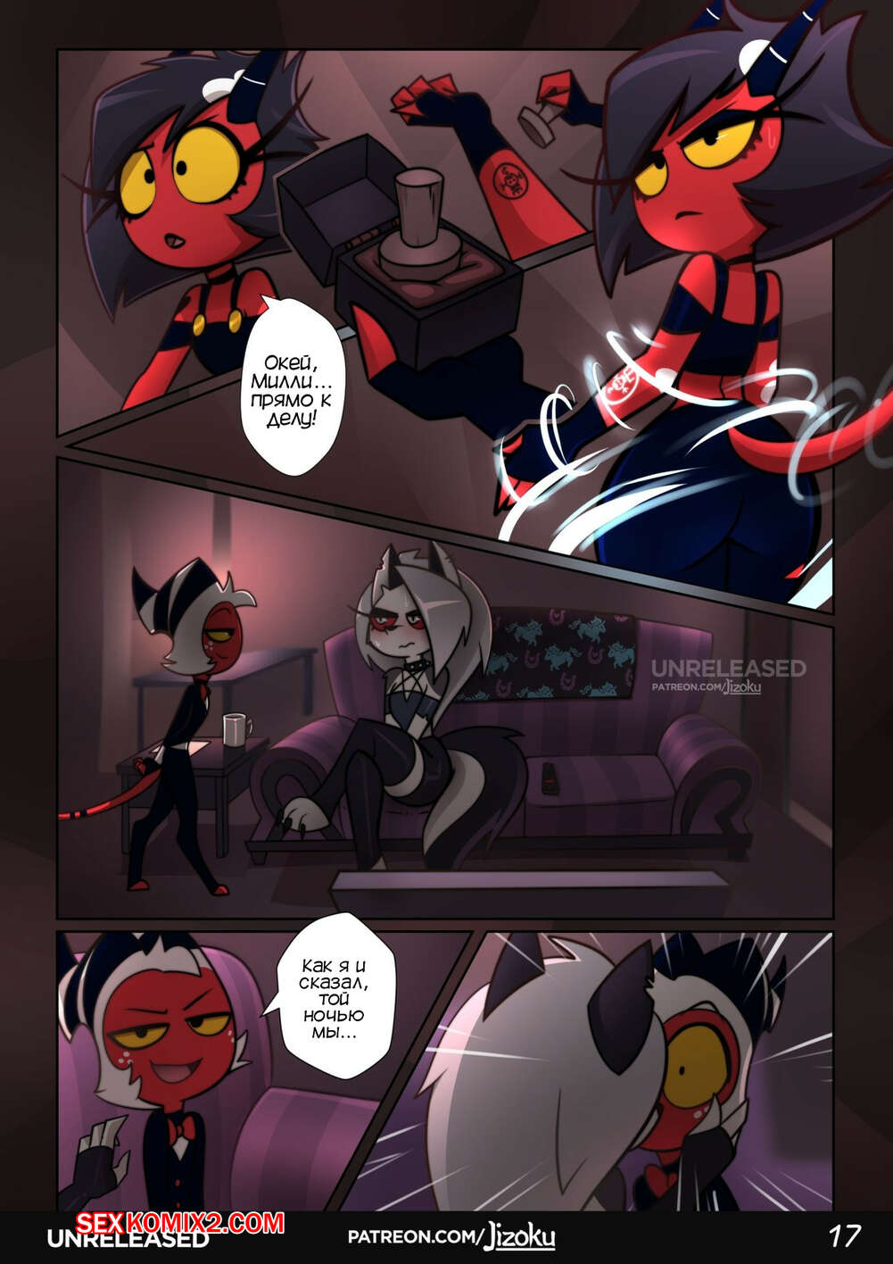 Порно комикс Адский Босс. Ночь с Луной. Часть 2. A Night With Loona. Jizoku Девушка прогуливалась после работы и наткнулась на Милли, которая была в слезах после измены мужа. Между девушками завязался разговор, который обещает интересное продолжение.