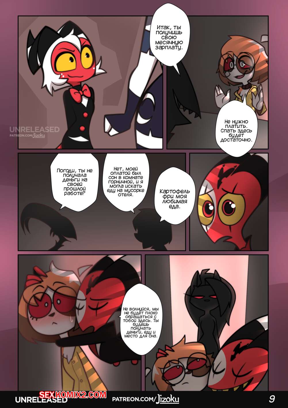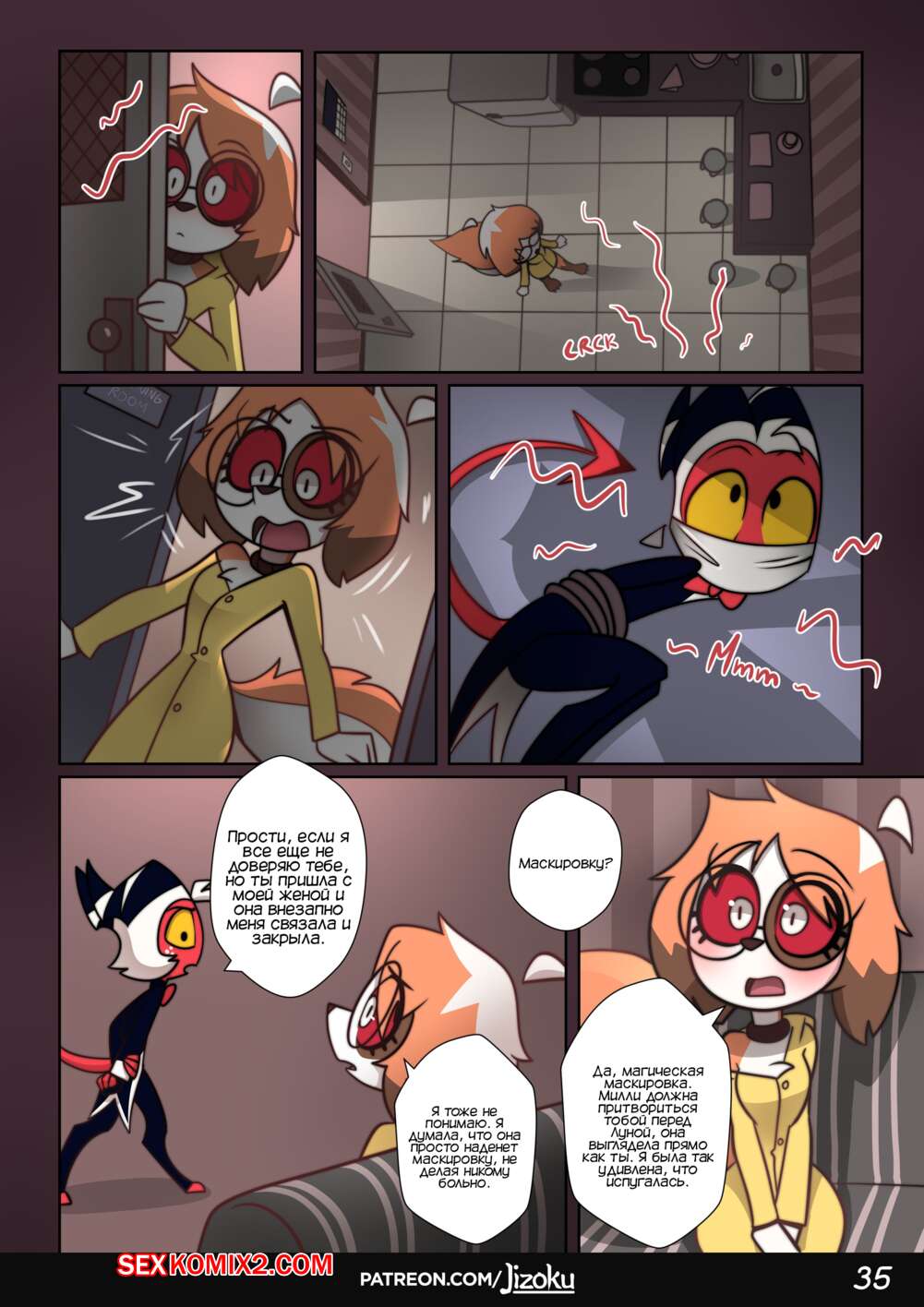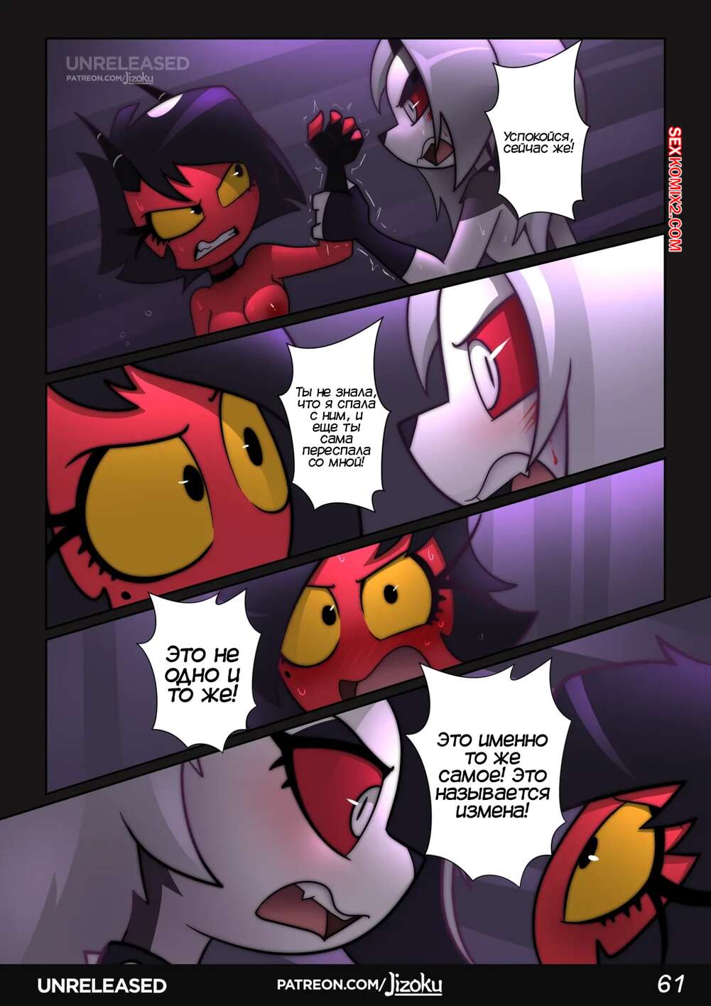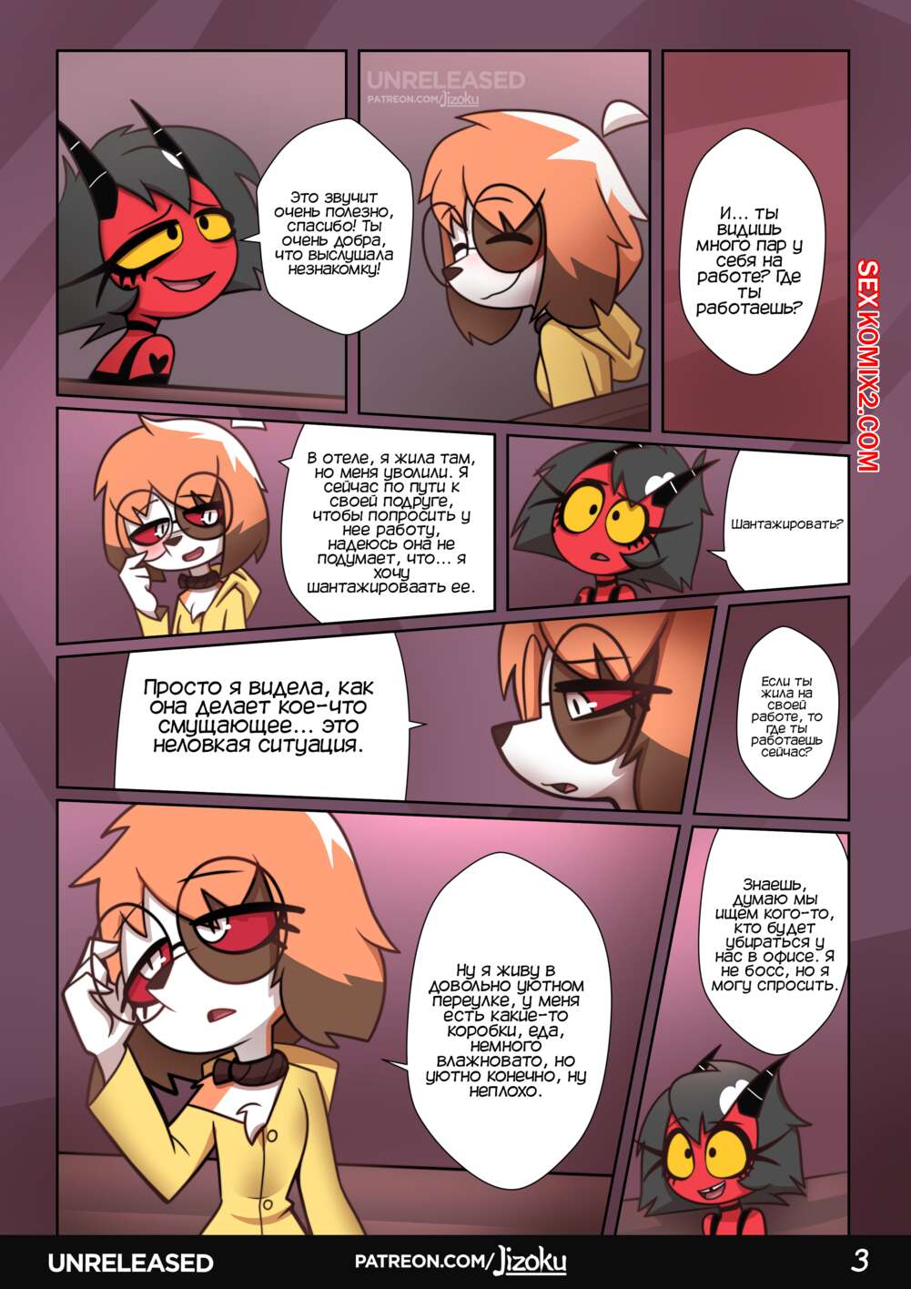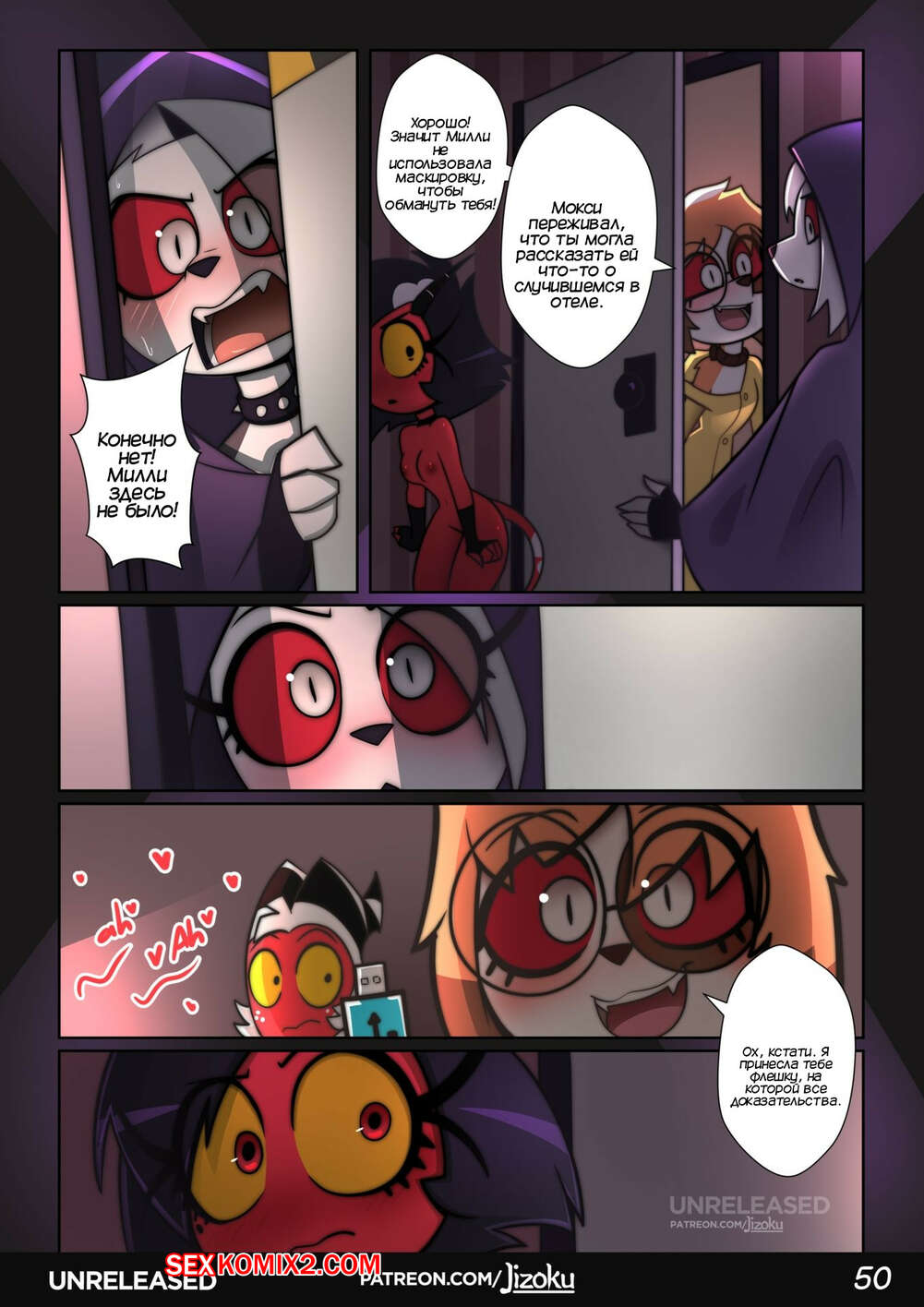 Порно комикс Адский Босс. Ночь с Луной. Часть 2. A Night With Loona. Jizoku Девушка прогуливалась после работы и наткнулась на Милли, которая была в слезах после измены мужа. Между девушками завязался разговор, который обещает интересное продолжение.