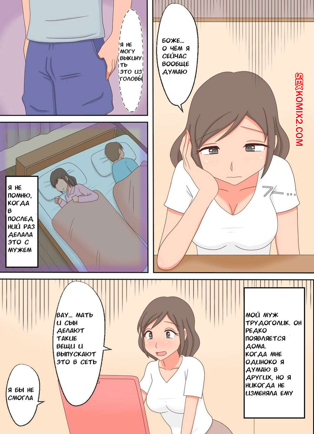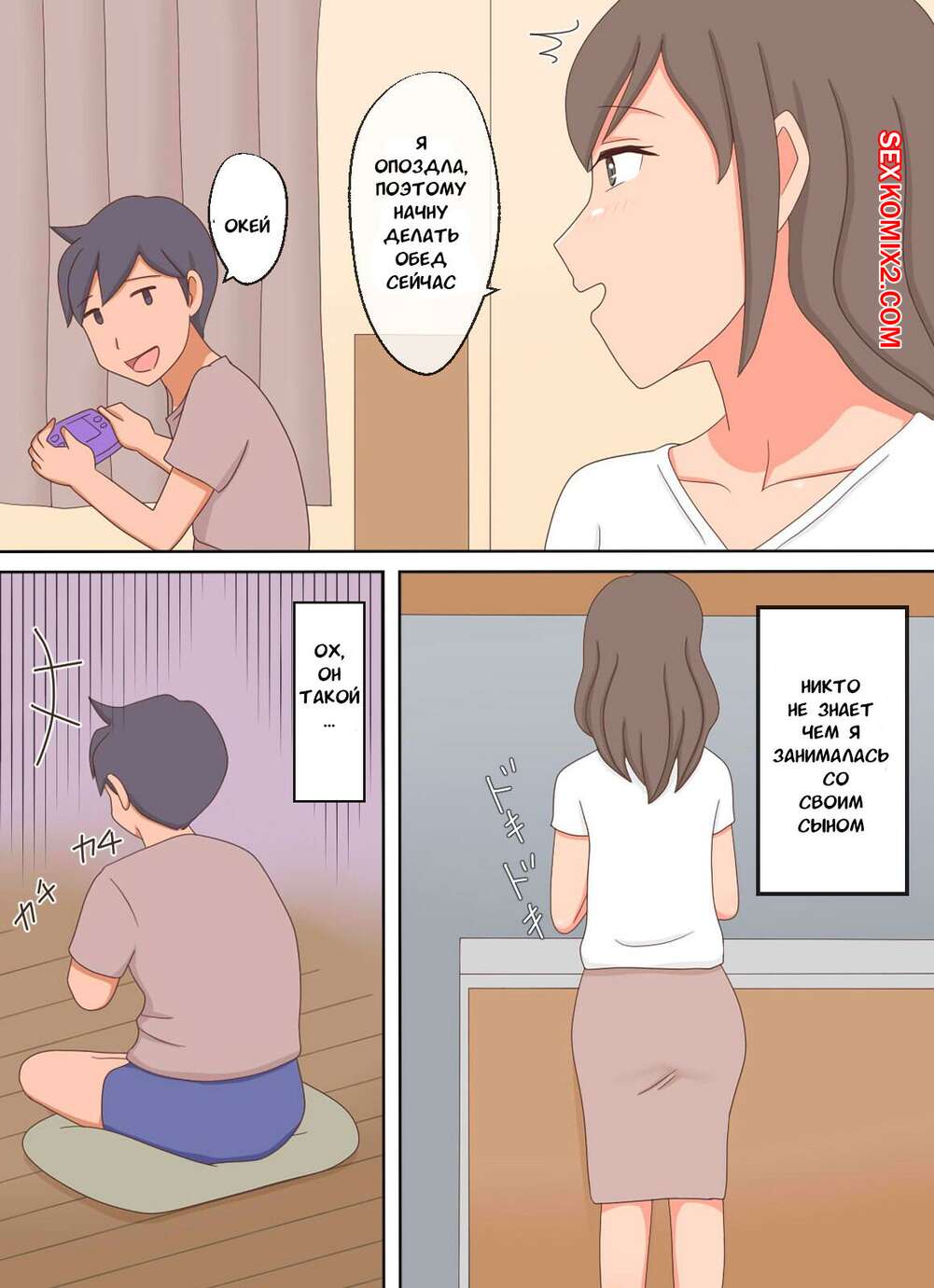Порно комикс Увидев порно мамы и сына, я сделала это со своим сыном. Juku Echi Land Сексуальная милфа брюнетка увидела порно между мамой и сыном, теперь ей тоже хочется попробовать это. Мамочка разделась перед сыном и отсосала его большой хуй, после чего дала ему себя выебать.