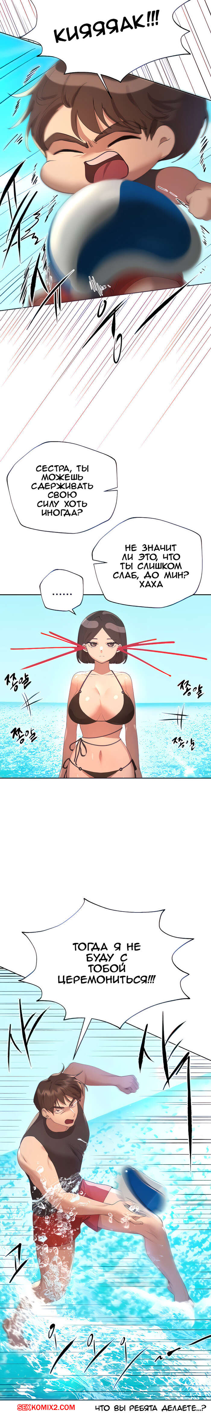 Порно комикс Подруги сестры. Часть 59. Sisters friends Парень был очень возбужден рядом с сексуальной брюнеткой и решил с ней повеселиться. Он схватил девушку и потащил ее с собой в бассейн, чтобы трахнуть красотку там.