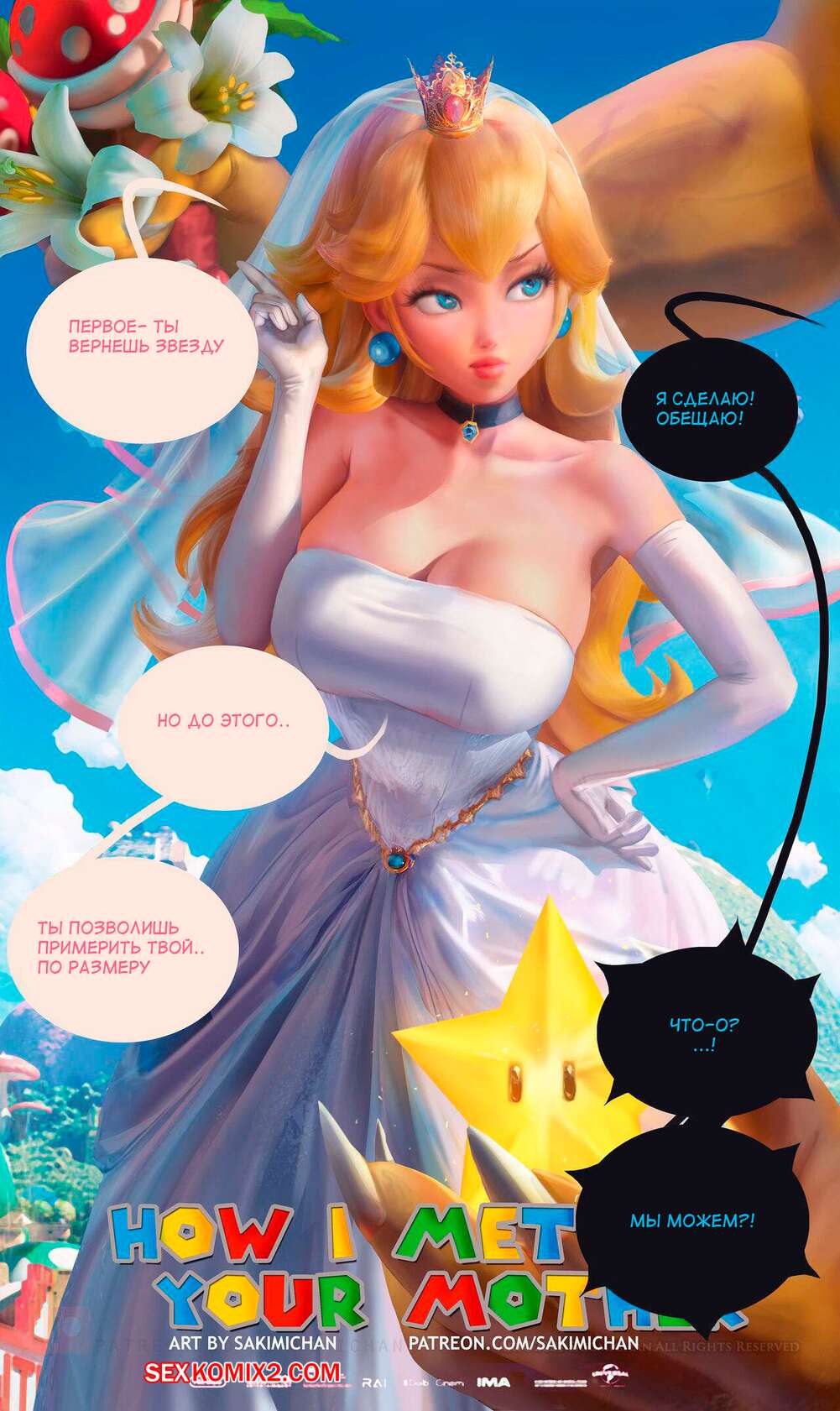 Порно комикс Марио. Как я всстретил вашу маму. How i met your mother. Sakimi Chan Баузер встретил сексуальную блондинку Пич и предложил ей повеселиться. Красотка разделась и возбудила парня своим шикарным телом, после чего стала сосать его большой хуй.