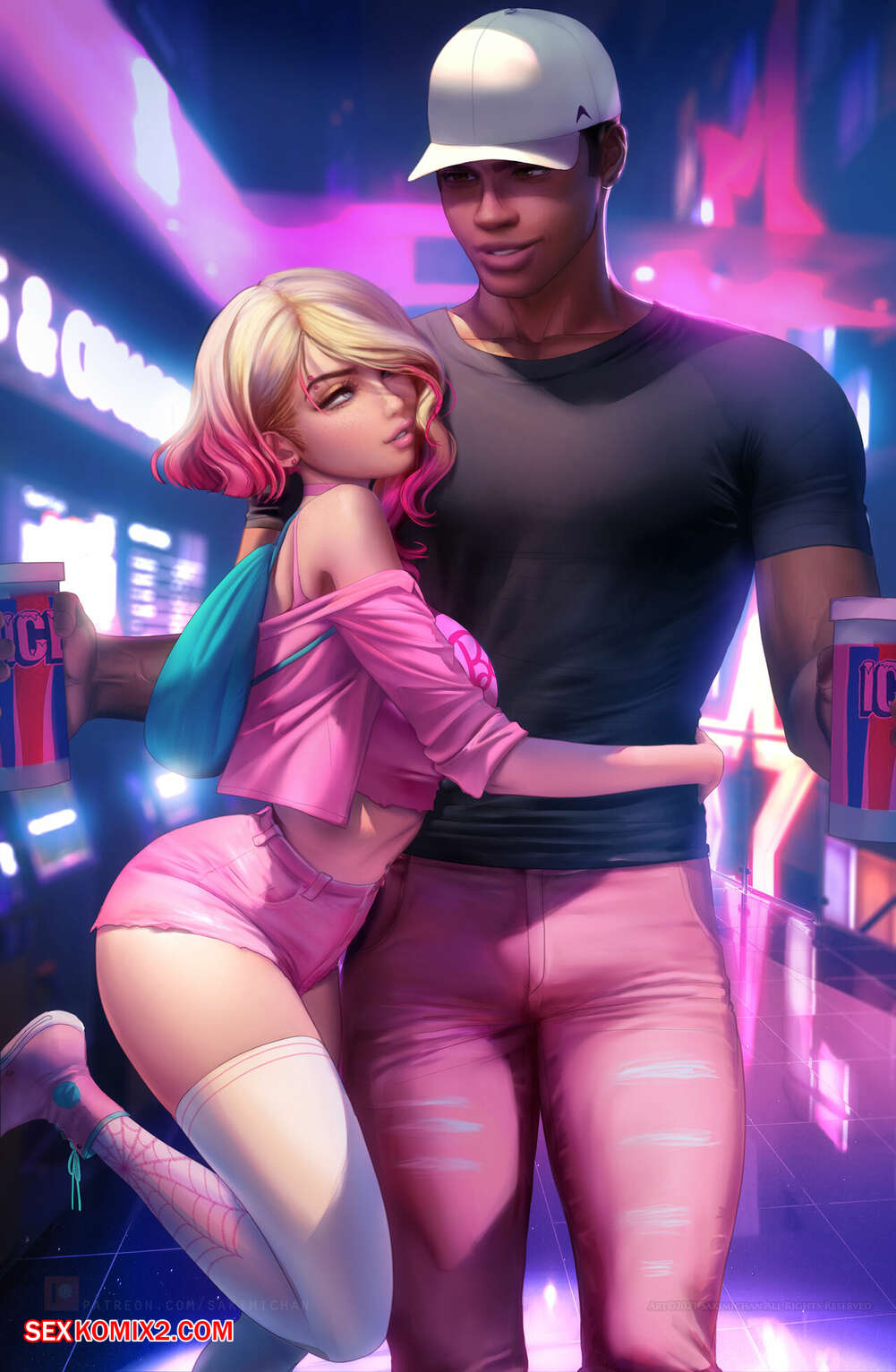 Порно комикс Spider Verse. Паучье свидание в кино. SpideyCouple Movie Date. Sakimichan Гвен и Майлз отправились в кино на свидание и решили там повеселиться. Красотка разделась и отсосала большой хуй парня, после чего дала ему себя хорошенько выебать.