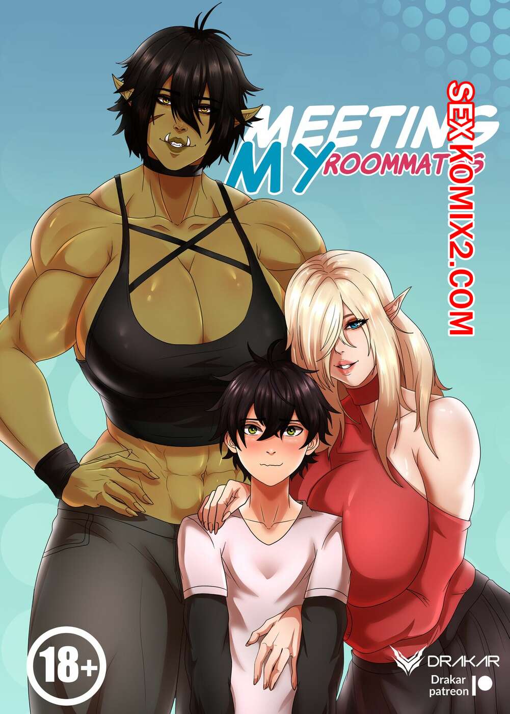 Порно комикс Знакомство с моими соседками. Meeting my roommates. Drakar. Парень заселился в новую квартиру, где его встретили две сексуальные соседки. На следующий день брюнеточка увидела большой хуй парня и очень возбудилась, поэтому она решила потрахаться с парнем.