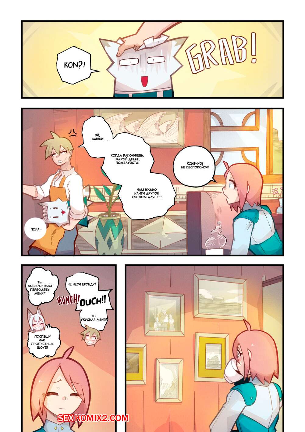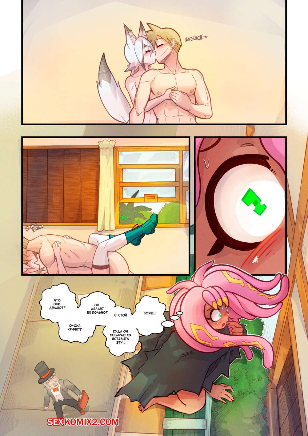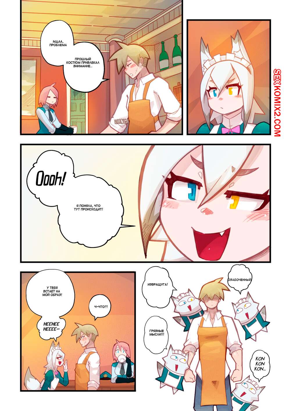 Порно комикс КОНКОН. КАПРИЗ. Часть 2. Kon Kon Caprice. Mr.E Горячая сексуальная блондинка просто без ума от большого члена своего дружка. Она раздевается перед парнем и хорошенько у него отсасывает, после чего дает ему себя выебать.