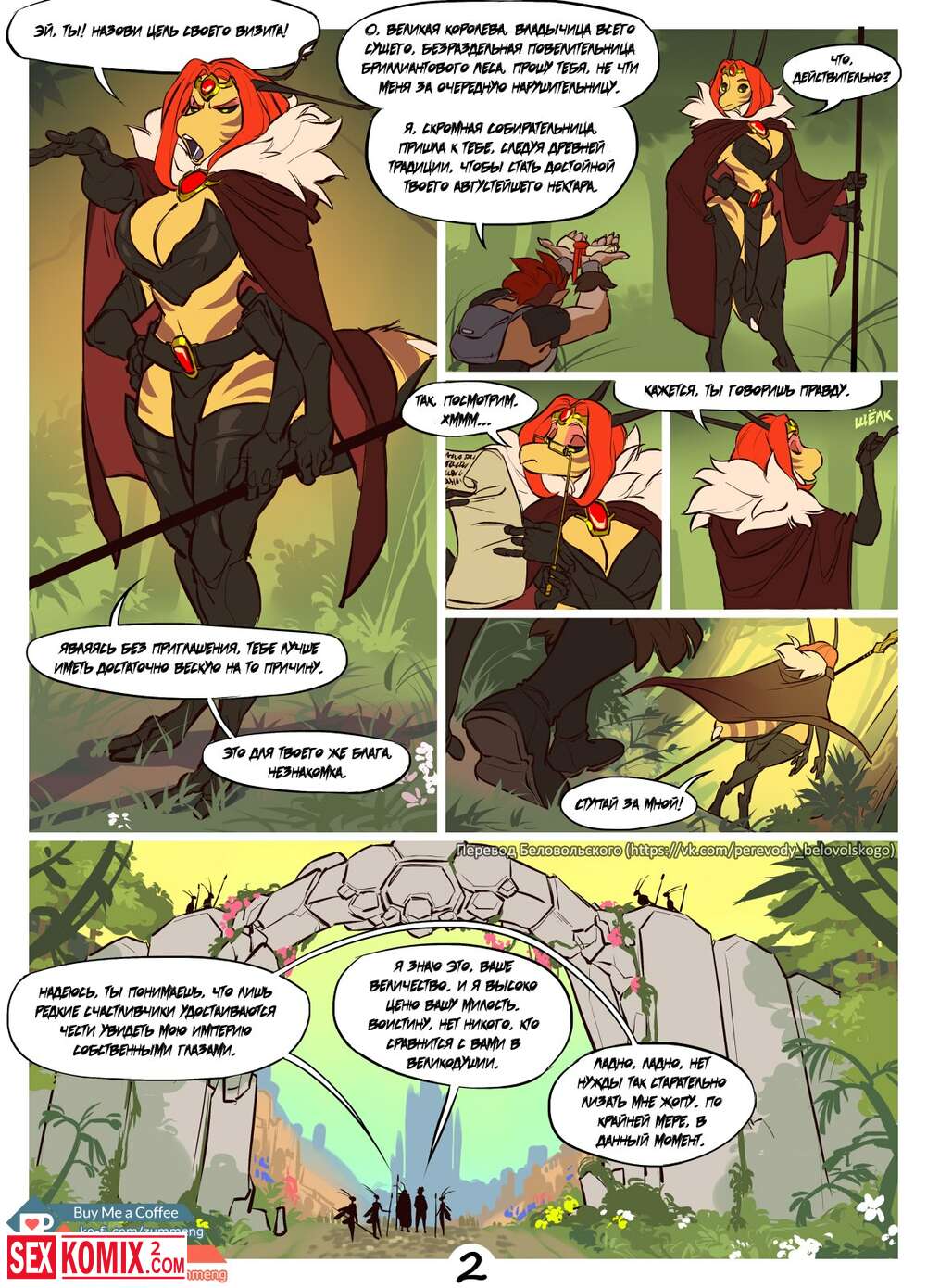 Порно комикс Королева пчёл. Гигантские пчелы поймали львицу и привели её к своей королеве. А она развлеклась с пленницей по полной.