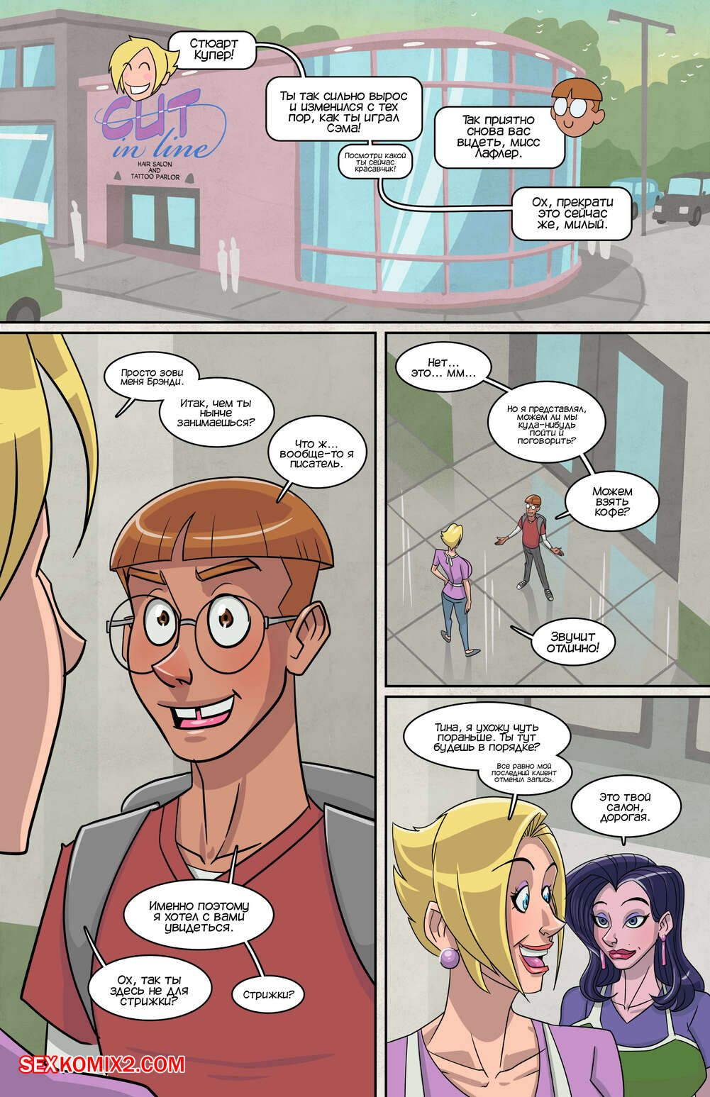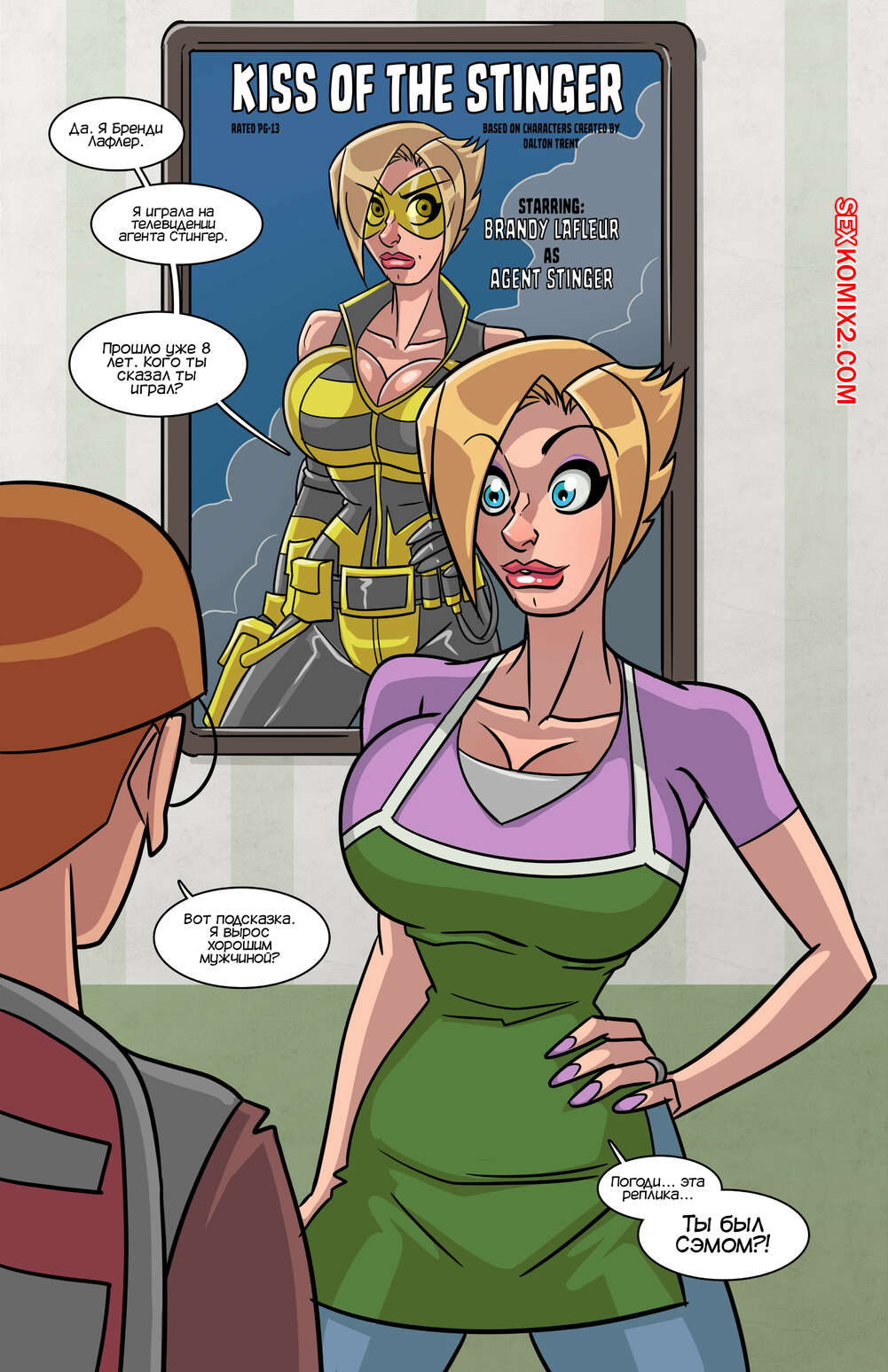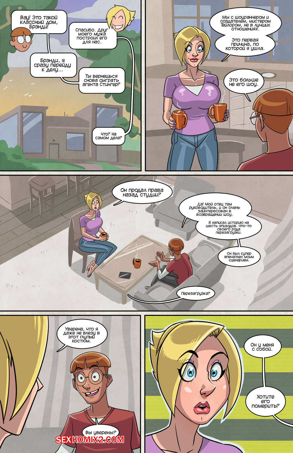 Порно комикс Бренди. Часть 1. Brandy. John North Молодой парень пришел к горячей милфе блондинке, чтобы предложить ей вновь сыграть ее самую известную роль. Красотка примерила свой костюм и они с парнем разыграли одну из их сцен. На женщине порвался костюм и Стюарт стал ласкать ее огромные сиськи, возбуждая красотку..