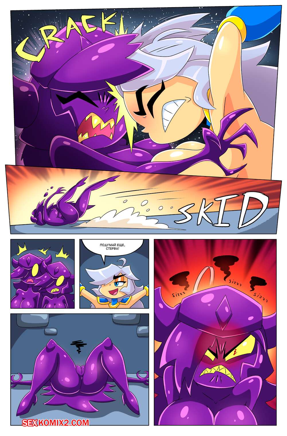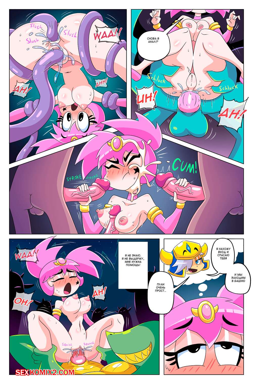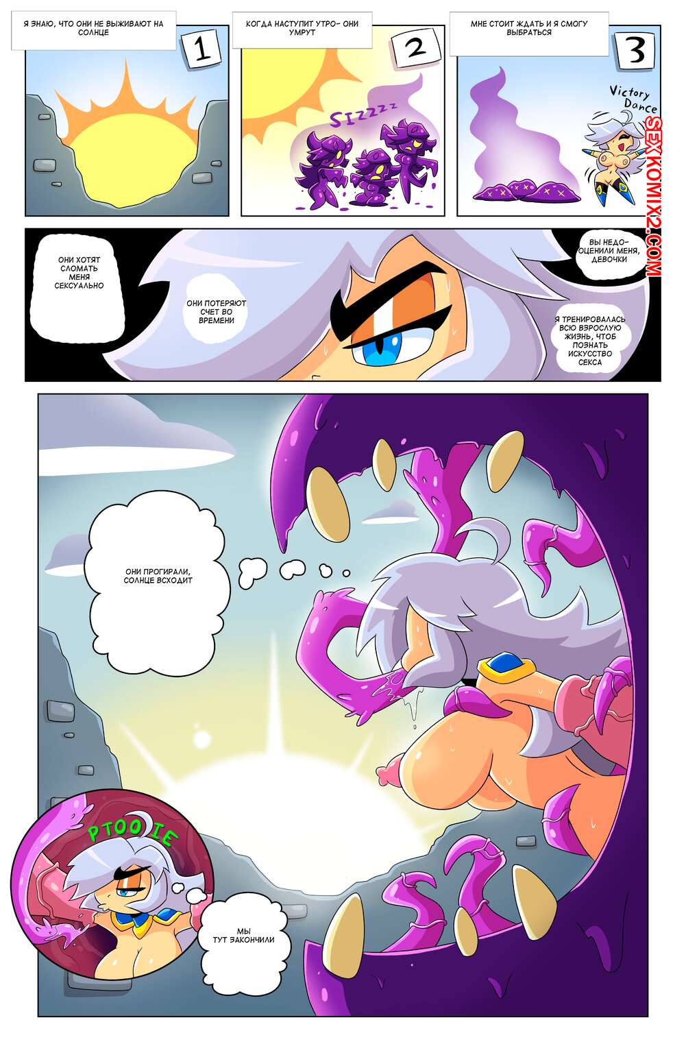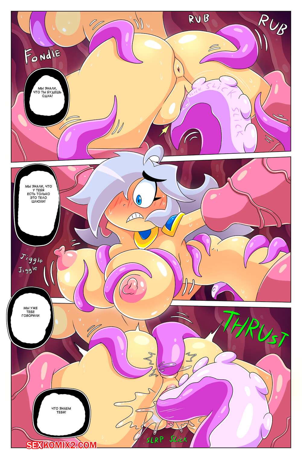 Порно комикс Сисястый квест. Часть 4. Booby Quest. DrShanks24 На горячую блондинку воительницу напал монстр. Он сперва выебал пизденку девушки и заполнил ее своей спермой, после чего проглотил ее и трахнул дырочки девушки в своем желудке.