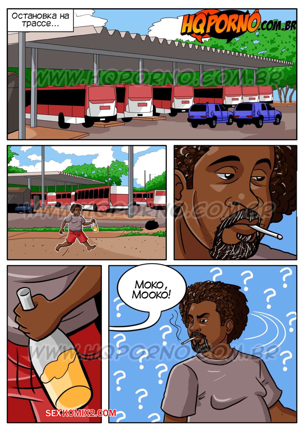 Порно комикс Парные фантазии. Часть 3. Fantasias de casal. HQPorno Сексуальная темнокожая милфа брюнетка пригласила бездомного парня к себе в машину, чтобы повеселиться с ним. Красотка разделась и отсосала хуй парня, после чего дала ему себя выебать во все дырочки.