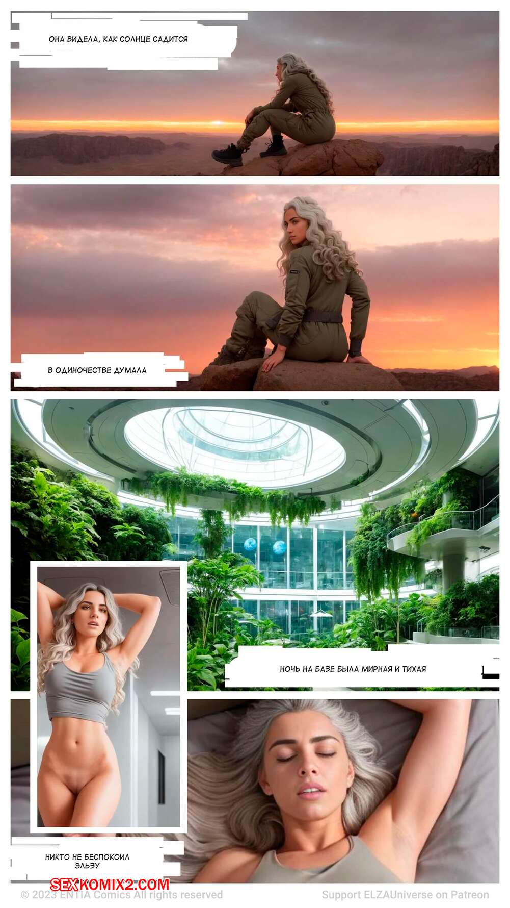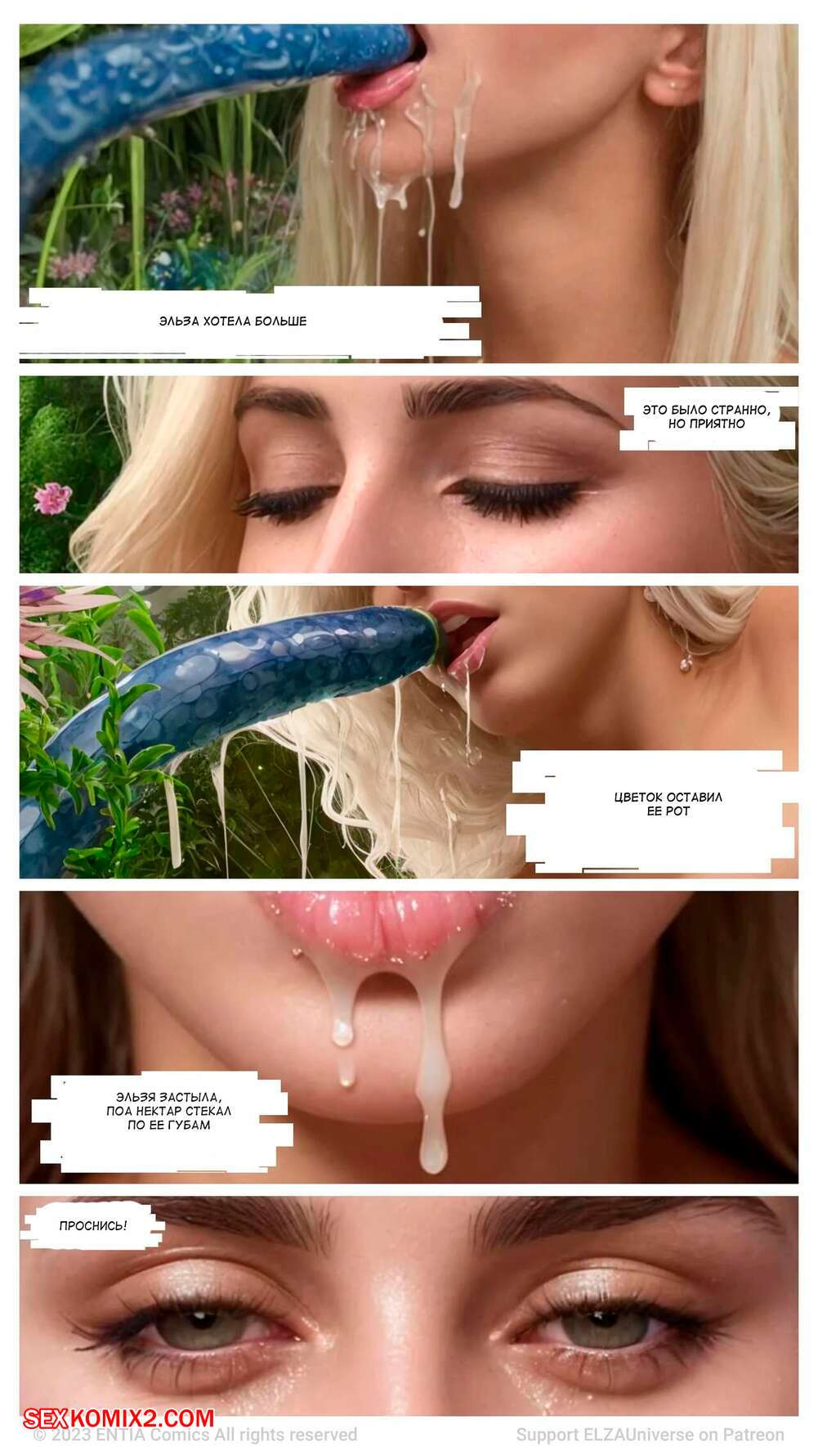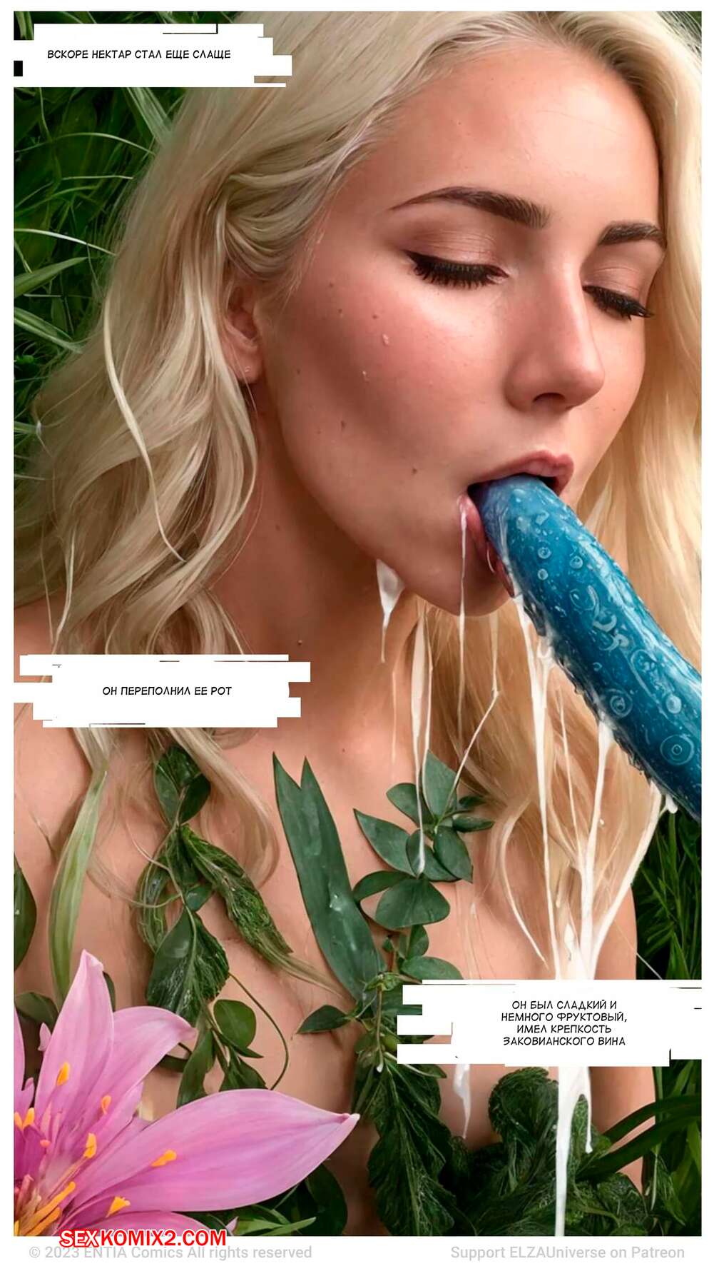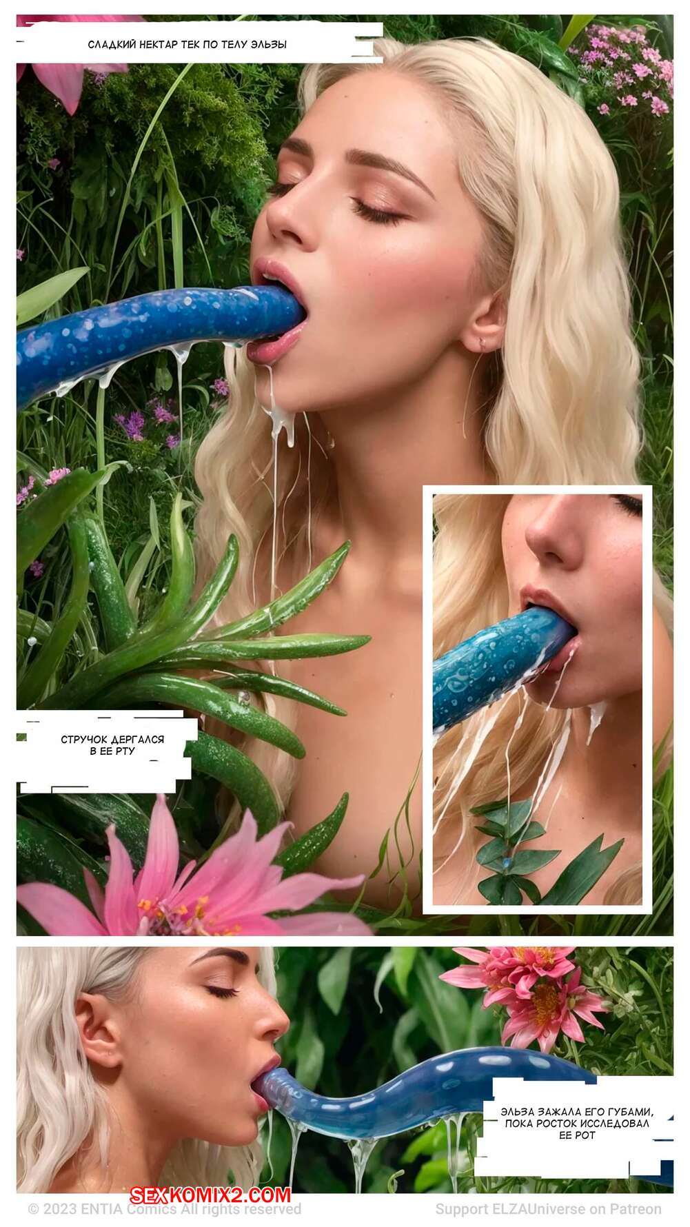 Порно комикс Эльза. Часть 1. ELZA Сексуальная блондинка Эльза была очень возбуждена и хотела трахаться. Она отправилась в сад, где стала сосать растение, которое очень напоминало ей член, от чего получила огромное удовольствие.