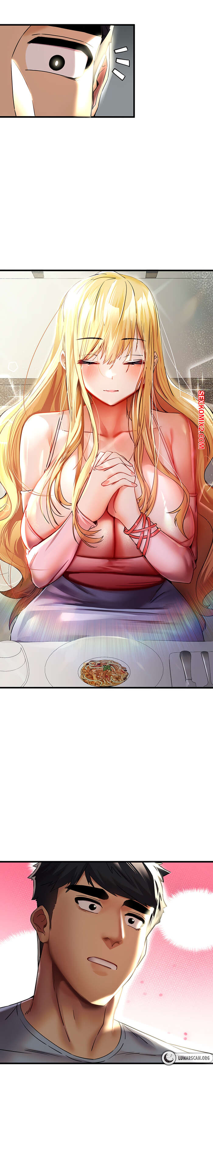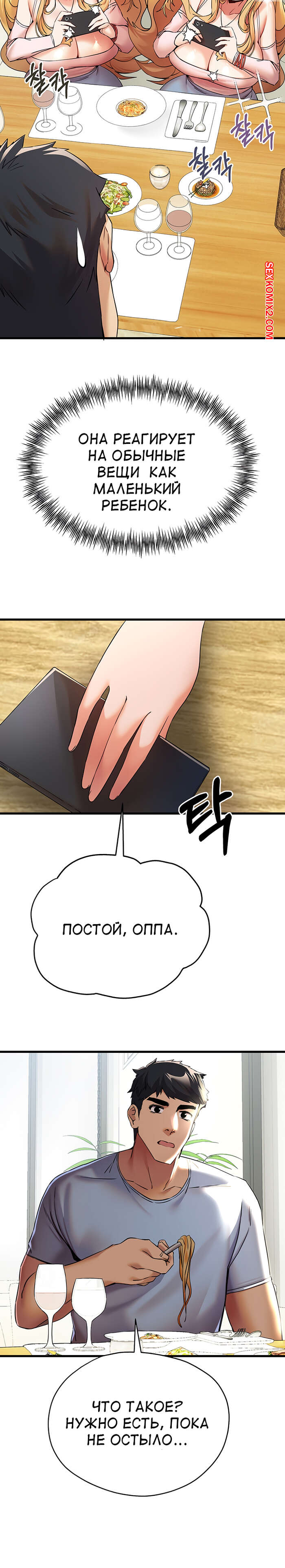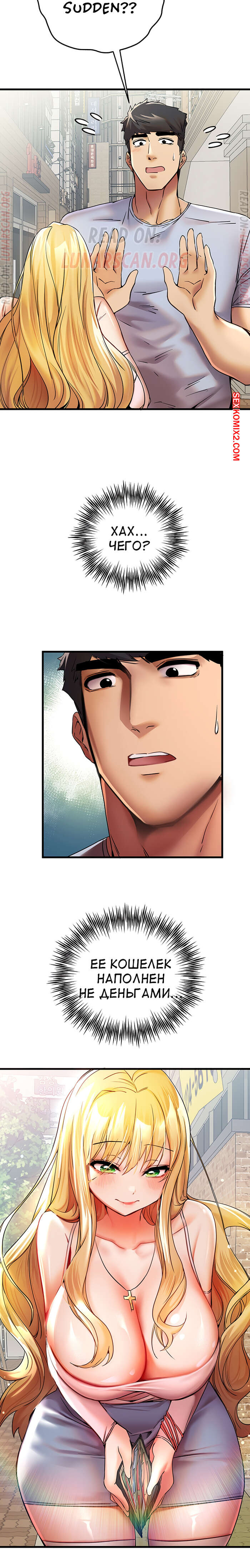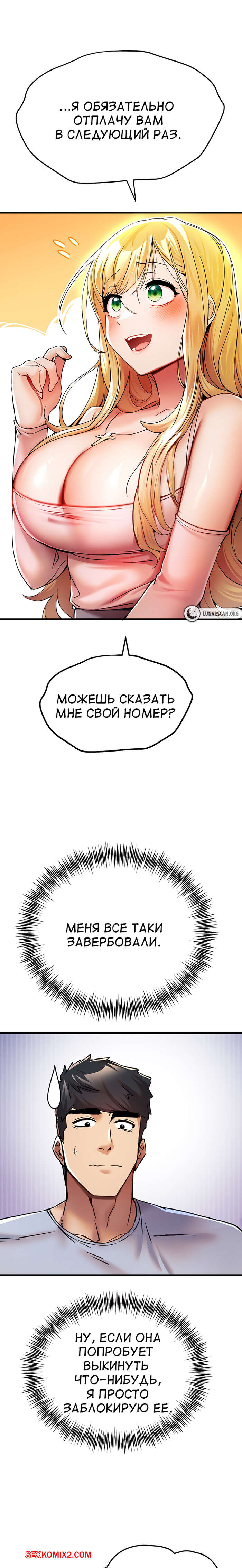 Порно комикс Я должна спать с незнакомцем. Часть 15. I Have To Sleep With A Stranger Парень помог сексуальной блондинке на улице и в знак благодарности она пригласила его пообедать. Оказавшись в ресторане, парень никак не мог отвести глаз от огромных сисек девушки..