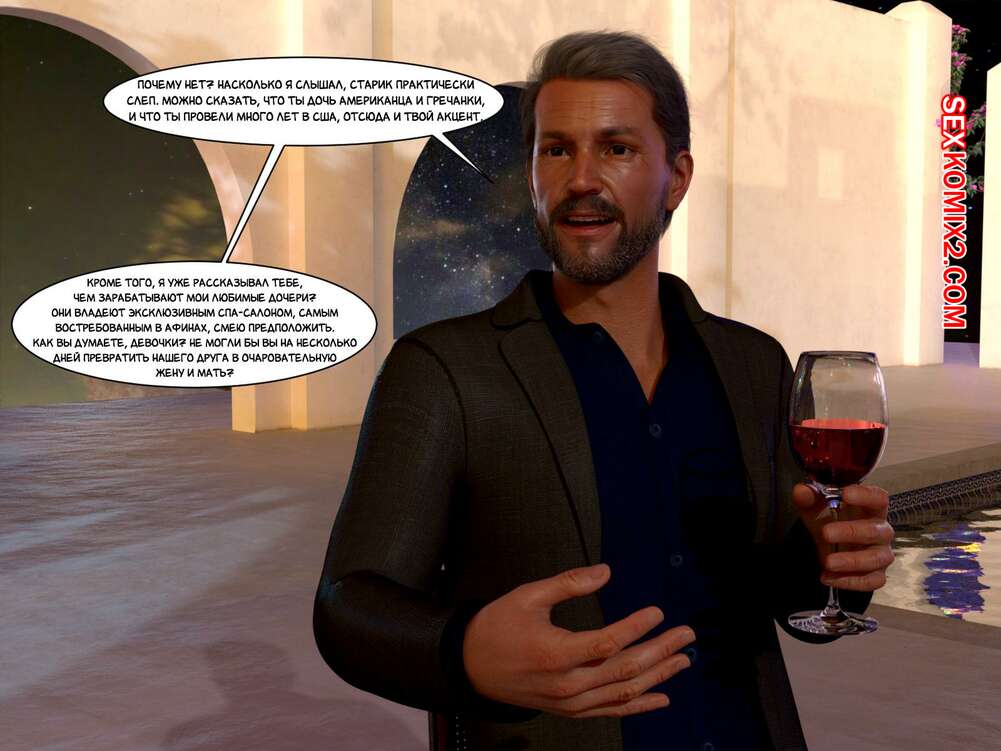 Порно комикс Зеркало Афродиты. Часть 1. Необычное предложение. Melissa822 Молодой парень со своей женой приехал на балканы по приглашению дяди девушки. Он успешный бизнесмен, который обращается к мужу племянница за помощью, чтобы он исполнил роль его жены ради успешной сделки.