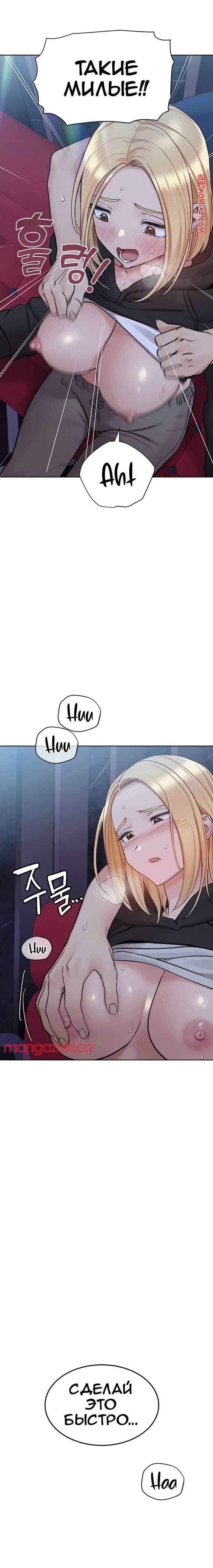 Порно комикс Это секрет для моей матери. Част 94. Только маме не говори Сексуальная блондинка была очень возбуждена и решила повеселиться со своим дружком. Она достала его хуй и стала ему надрачивать, после чего дала парню себя хорошенько выебать.