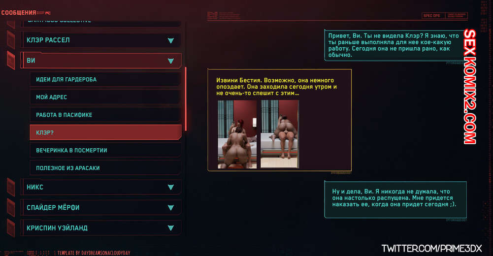 Порно комикс Cyberpunk 2077. Сборник историй. Prime3Dx Сборник 3Д историй с горячими красотками с большими хуями. Они раздеваются и ласкают друг дружку, после чего занимаются страстной анальной еблей, получая огромное удовольствие.