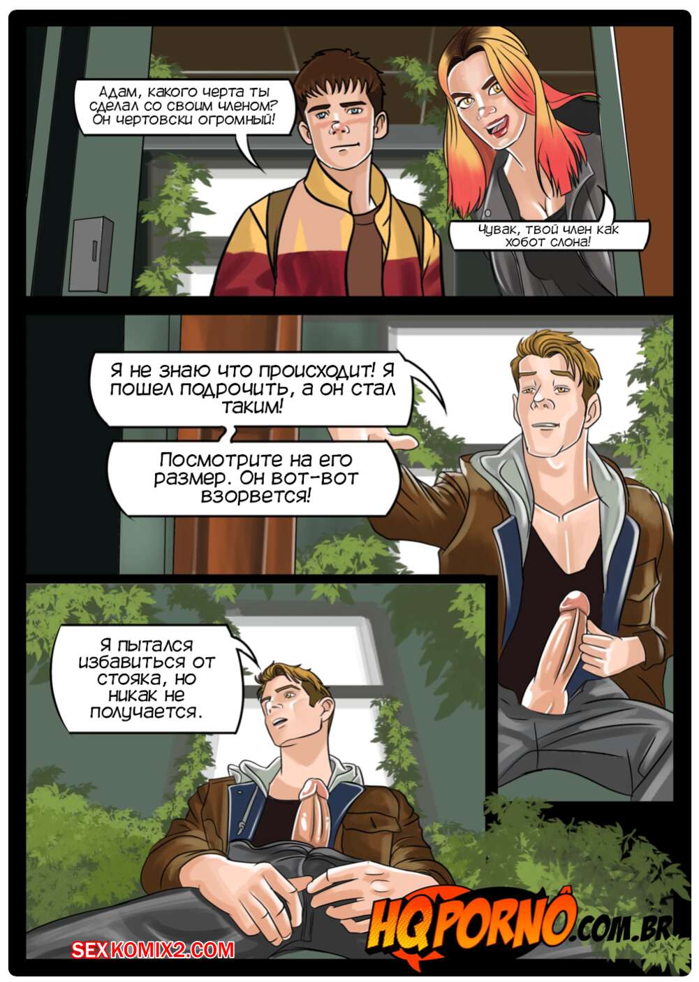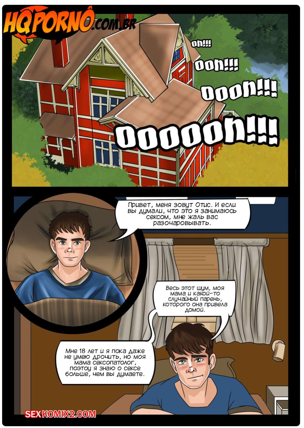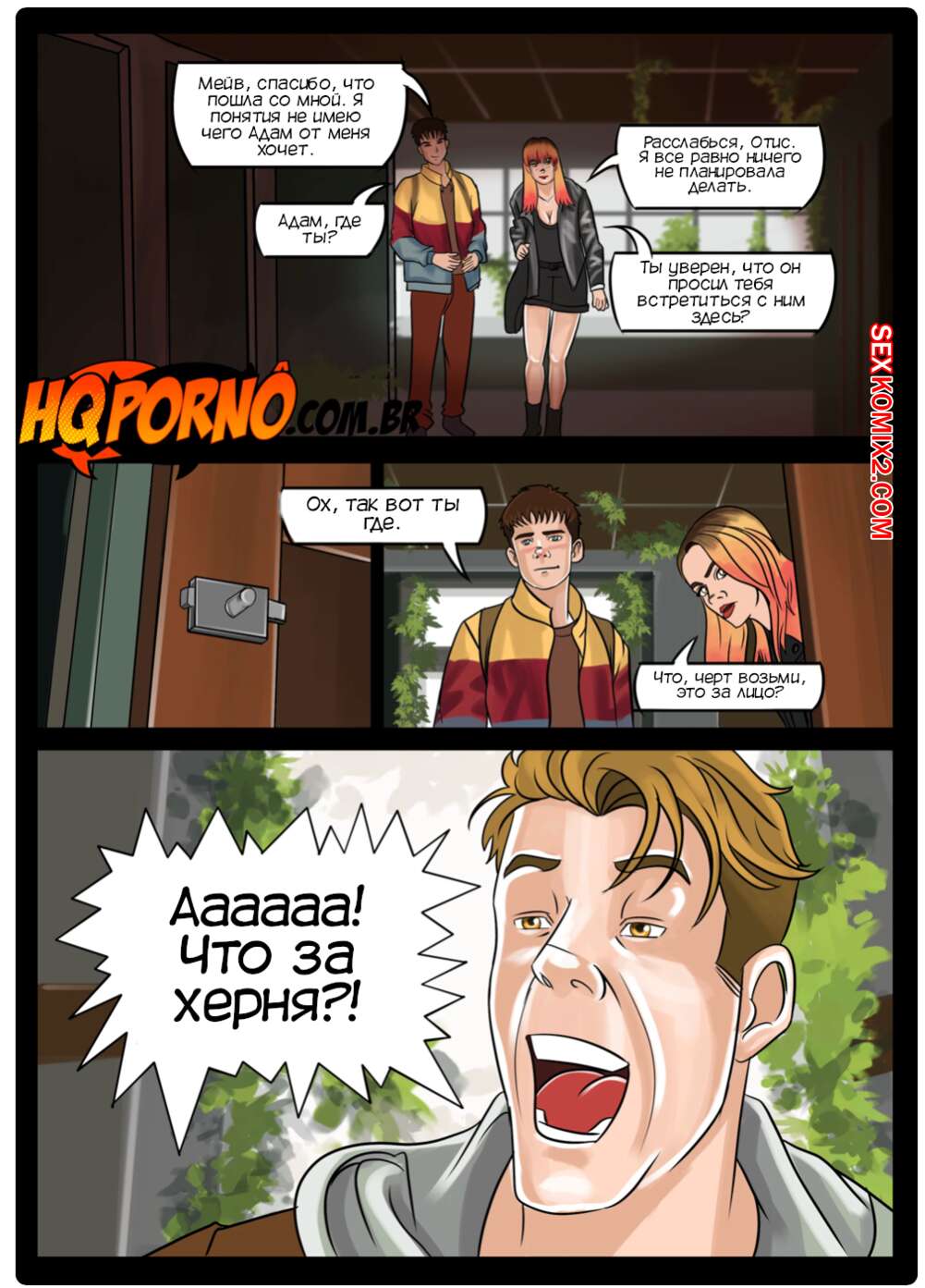 Порно комикс Половое воспитание. Часть 1. Sexo na escola. HQPorno Адам пригласил Отиса после уроков в заброшенную раздевалку. Мейв пошла с другом и они обнаружили Адама с огромным стояком. Мейв решила помочь ему расслабиться, поэтому встала на колени и стала ему отсасывать.