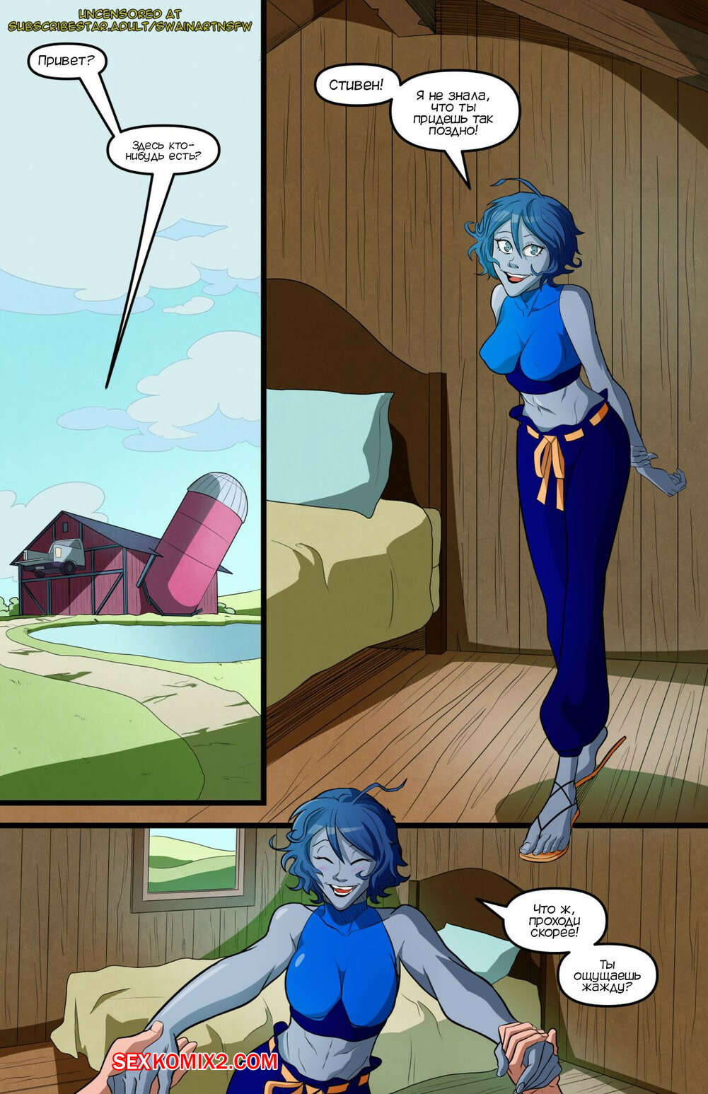 Порно комикс Вселенная Стивена. Лазурит и этот парень, Стивен. Swain Art. Лазурит обнаружила у себя дома Стивена. Парень стал раздевать красотку, после чего хорошенько выебал ее пизденку, исполнив фантазию девушки. Но все таки это был не Стивен..