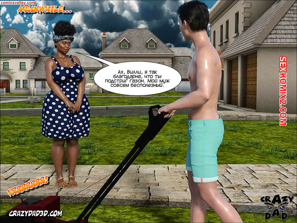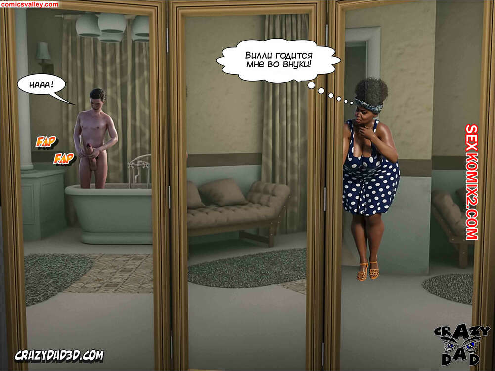 Порно комикс Помощь мамы. Часть 22 и 23. Moms Help. CrazyDad3D Вилли искал свою маму, но нигде не смог ее найти. Он увидел через дорогу свою горячую соседку и вызвался ей помочь. Дама набрала Вилли горячую ванну, чтобы он искупался, а парень решил устроить ей шоу, начав дрочить свой огромный член, представляя голое тело шикарной соседки.