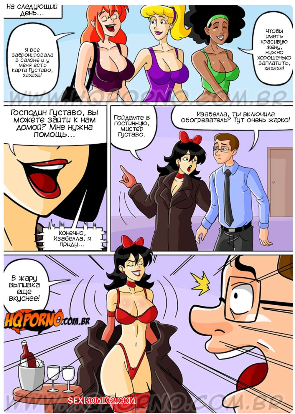 Порно комикс Грехи соседства. Часть 13. Pecados da vizinhanca. HQporno Молодая красотка готовится к включению в розовую книгу. Она пригласила сеньора Густаво к себе домой и соблазнила его своим шикарным телом, после чего дала ему выебать свою задницу и кончить в нее.