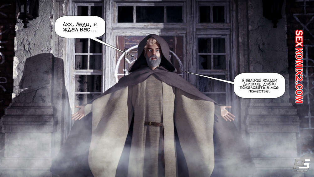 Порно комикс Зачарованные. Spellbound. Pegasus Smith В Хэллоуинскую ночь две сексуальные блондинки милфы оказались в старом поместье, где обнаружили молодого парня. Ему удалось раздеть их и красотки стали сосать его большой хуй, после чего он хорошенько их выебал.