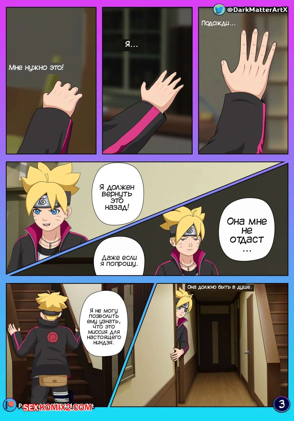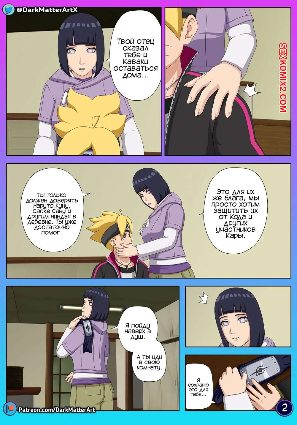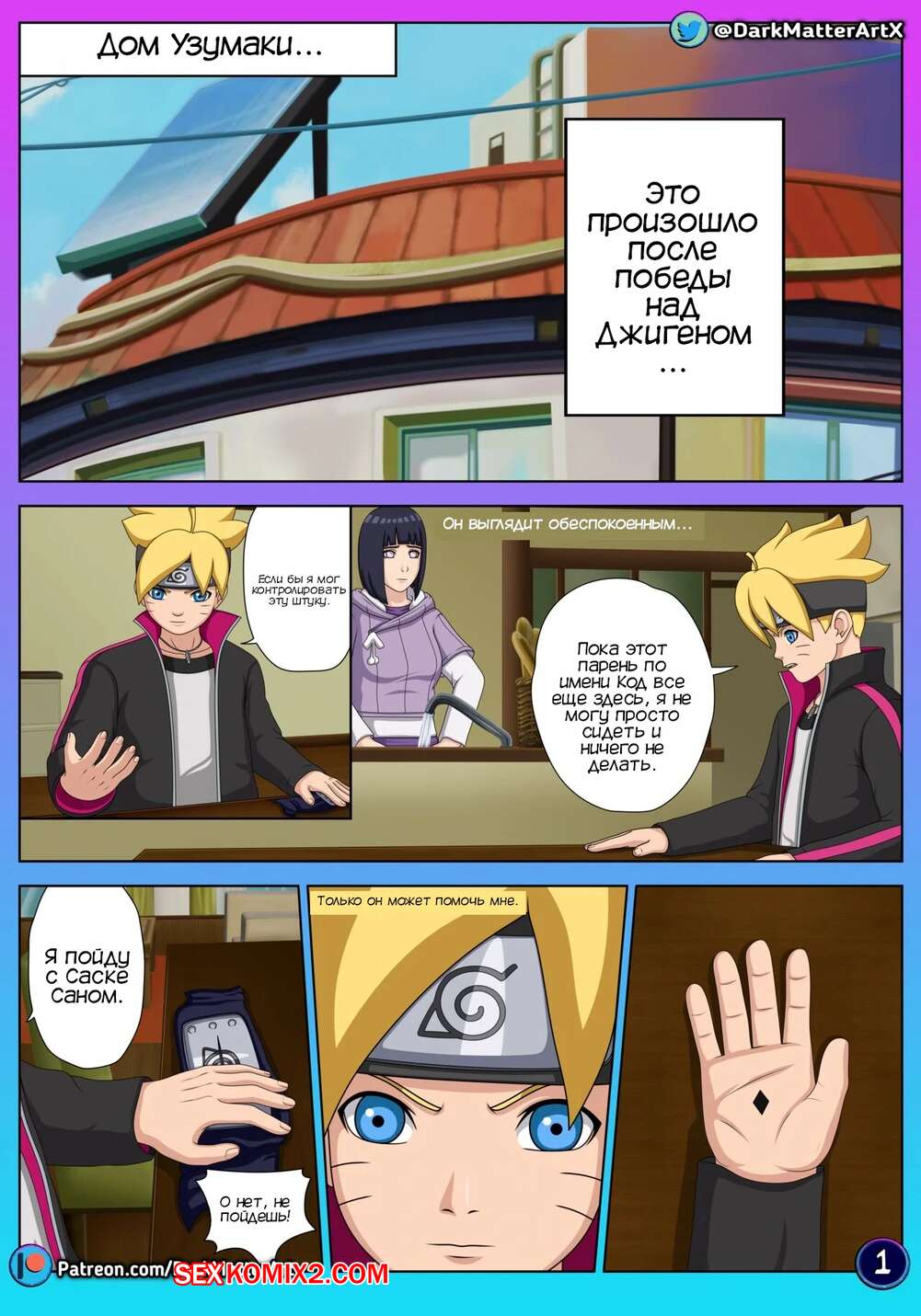 Порно комикс Наруто. Путаница в постели. Confusion in Bed. Darkmatter Боруто проник в душ к своей маме в поисках защитника. Он испугался, что она его спалит, поэтому быстро превратился в своего отца. Хината была возбуждена и решила повеселиться с Наруто, поэтому отсосала его член и дала ему себя выебать.