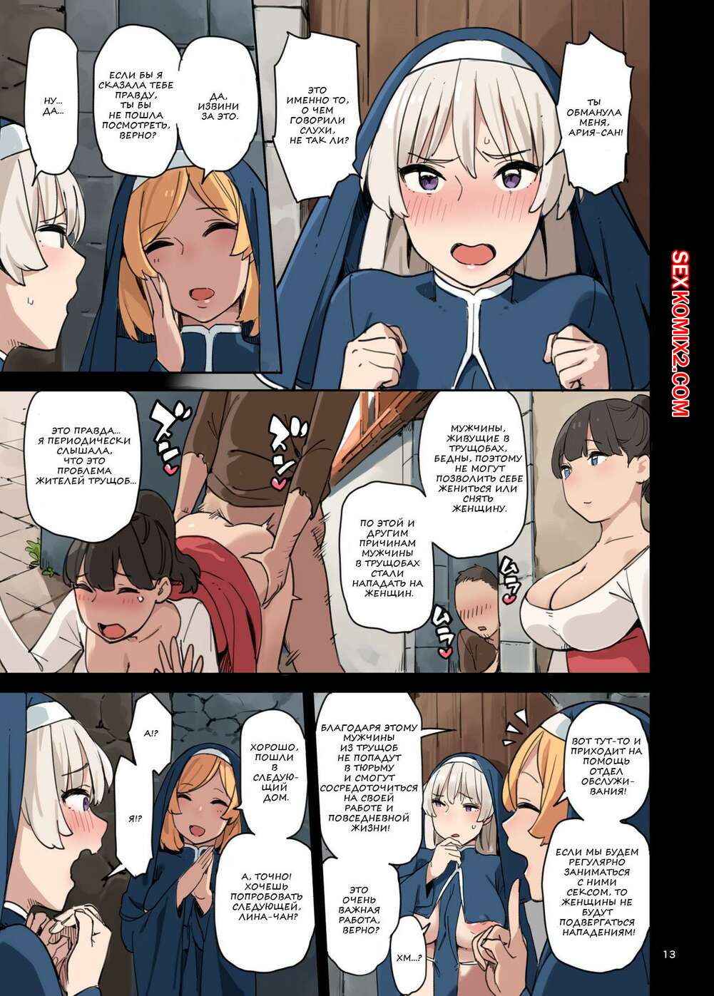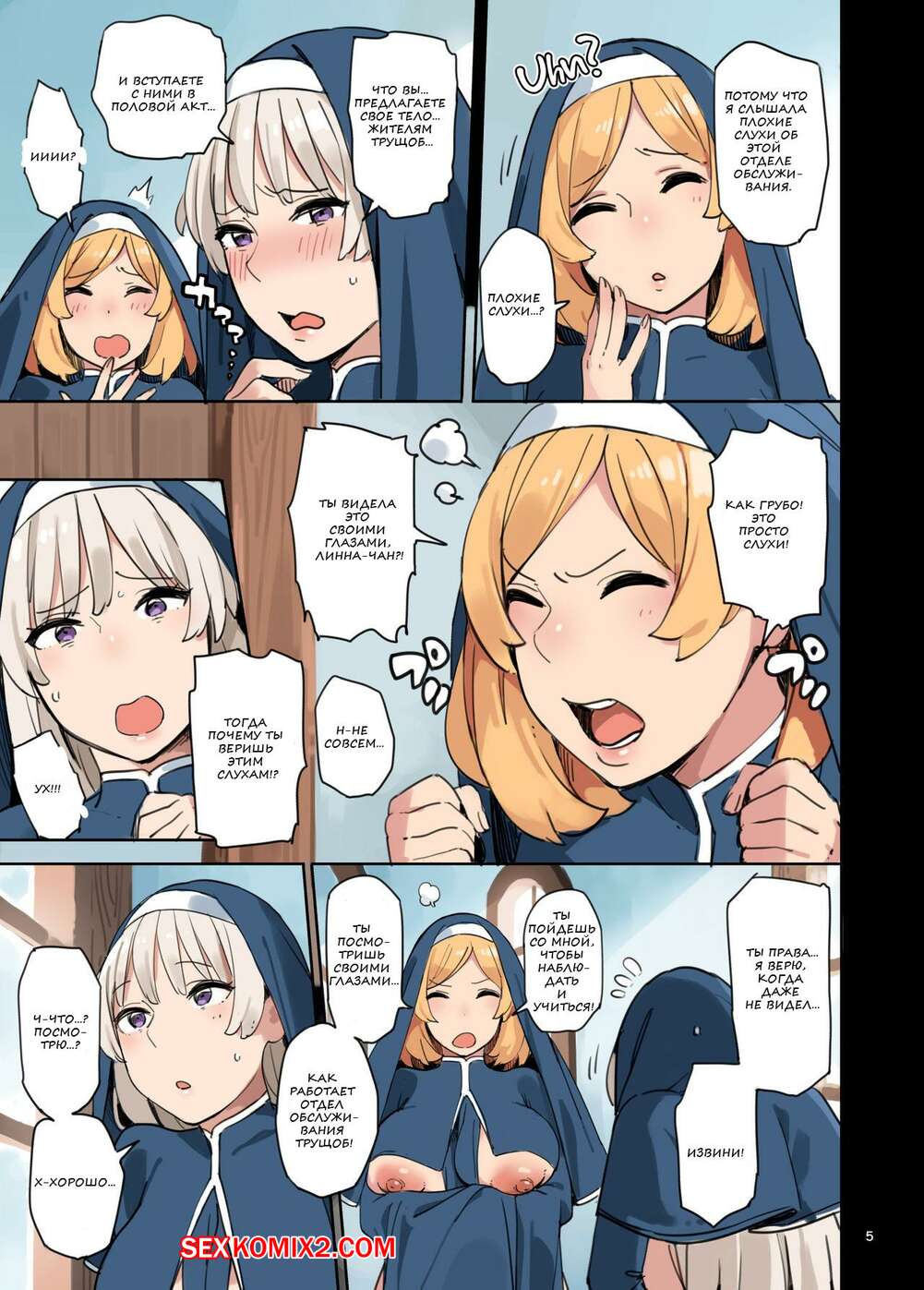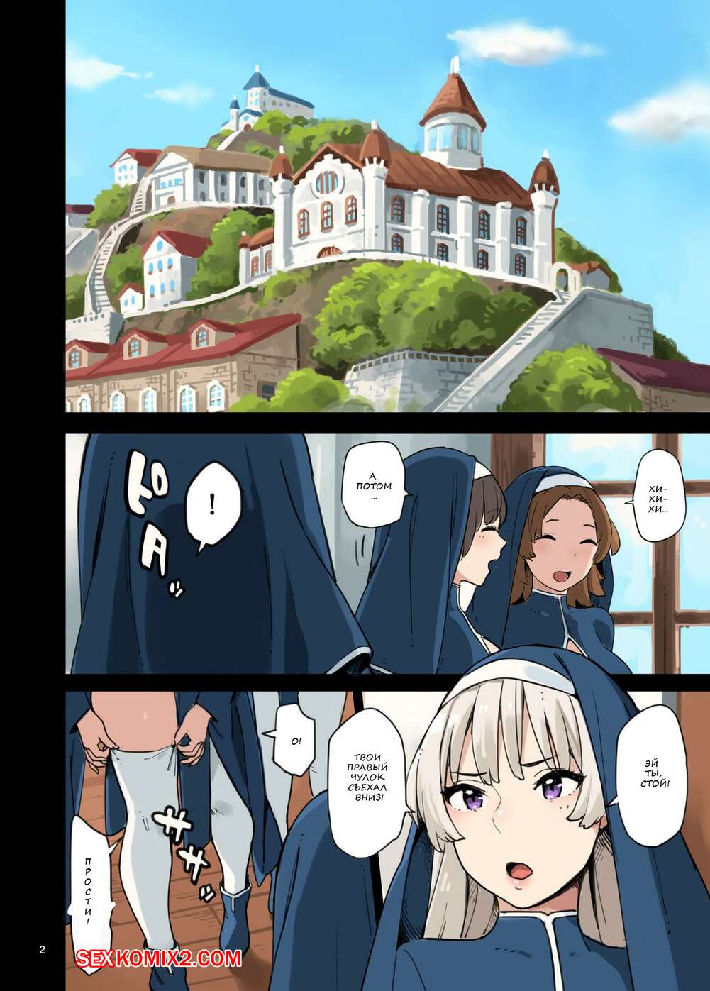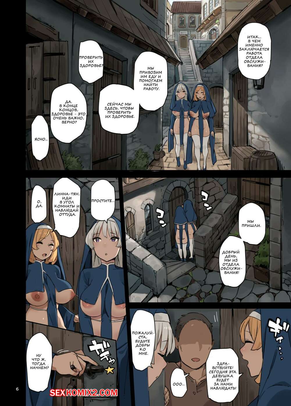 Порно комикс Визит отдела обслуживания. Mikan Горячие красотки монашки отправляются домой к парню, чтобы обслужить его член. Девушки раздеваются и сосут большой хуй парня, после чего дают ему себя хорошенько выебать.